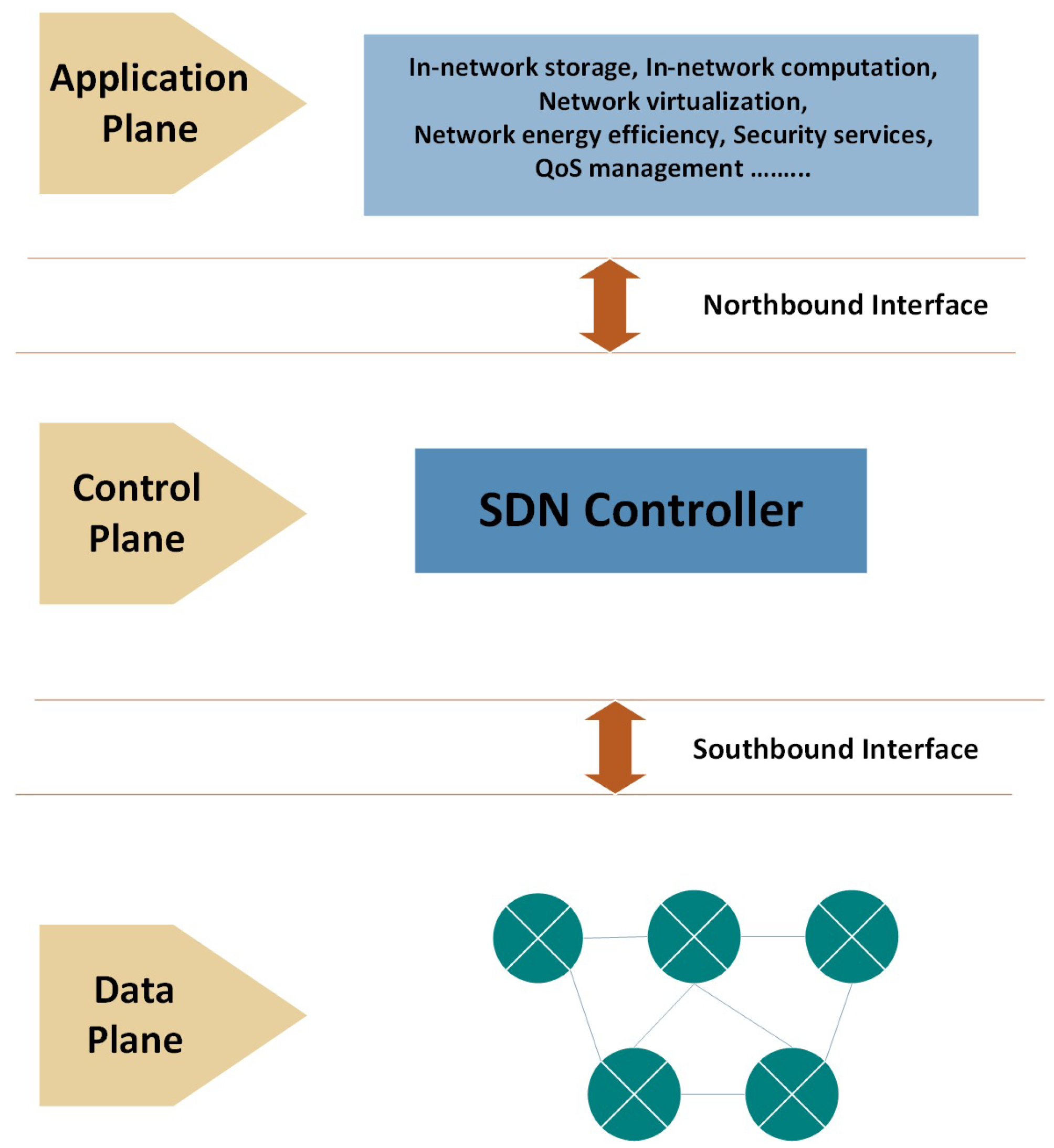 5]. (1) The Application Plane allows for instant development and instantiation of custom network services, in which developers have the ability to develop applications enhancing performance, security, and management of resources [