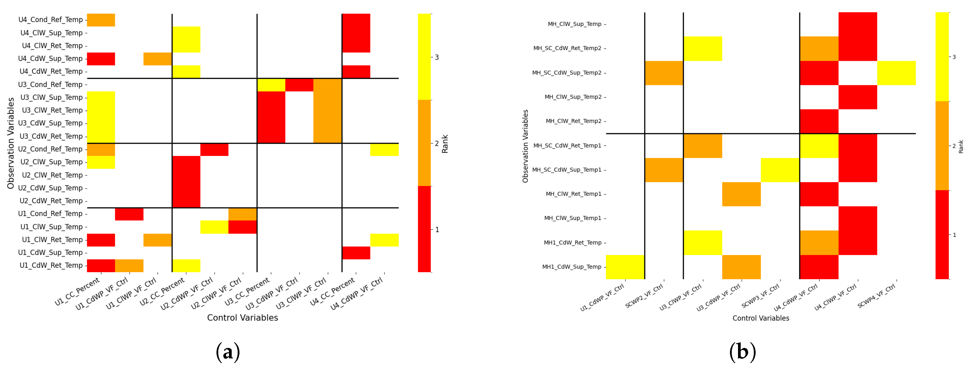 Extensive experimental validation was conducted on a large-scale dataset spanning 611 days. In the first stage, feedback signals were used to verify known control–response links, and the results demonstrated strong consistency with system design and physical expectations. In the second stage, the framework was applied to temperature-related observables, uncovering both expected intra-unit causal paths and novel cross-unit influences that are physically plausible but not explicitly encoded in the system layout. The analysis further revealed that Unit 4 exerted dominant influence on main header temperatures, consistent with its operational prominence. These findings highlight the method’s ability to capture both designed logic and emergent patterns of system behavior.