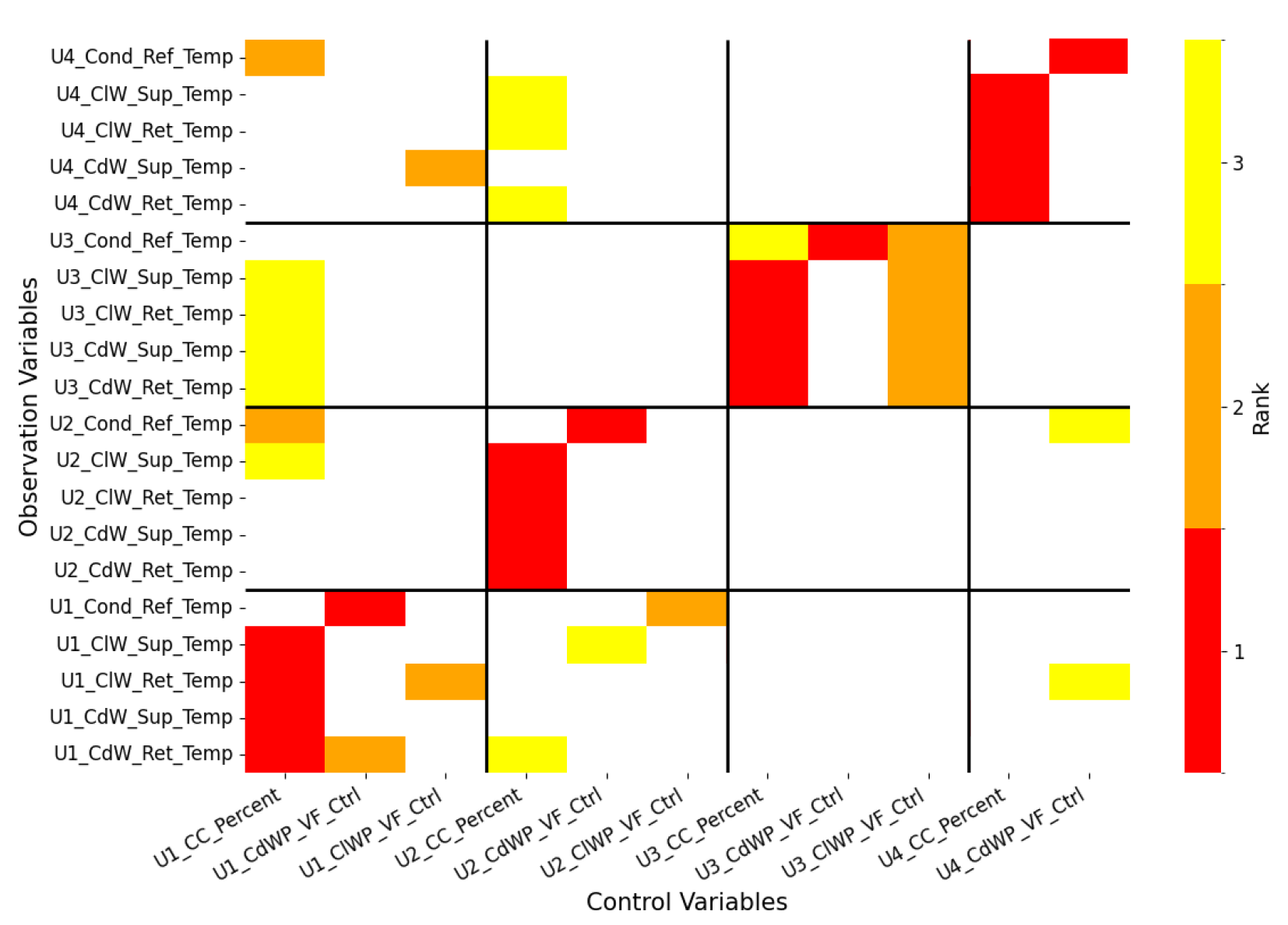 For complex physical systems such as data center cooling infrastructures, tasks like energy optimization and fault detection require a clear understanding of the causal network among system components. Of particular importance is the control–response relationship between control variables and observable variables—those quantities influenced by control actions and measured via sensors.