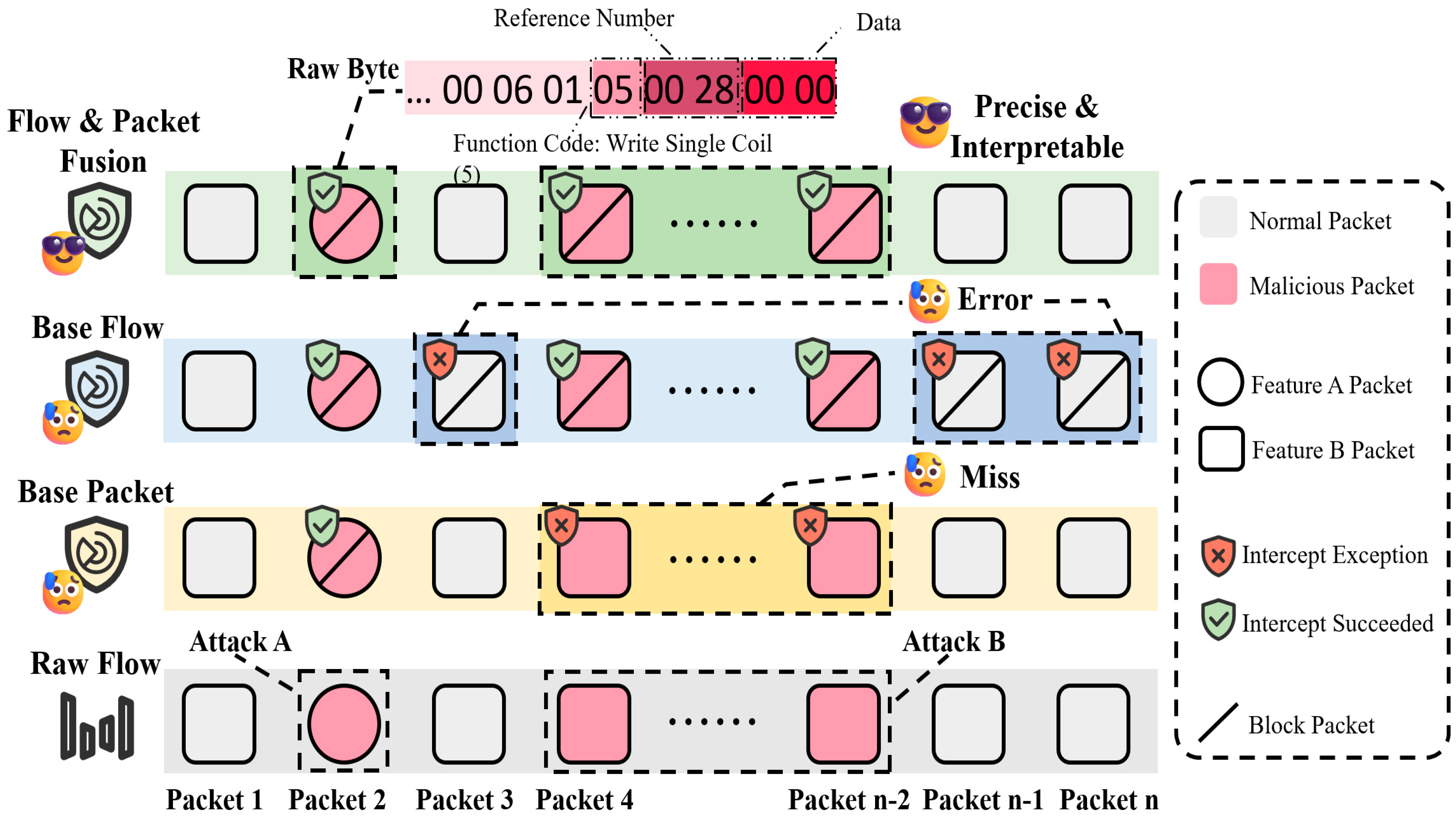 - Insufficient interpretability: Most existing models are unable to provide byte-level attribution or understand protocol semantics, limiting their ability to assist security personnel in accurate incident tracing and response.