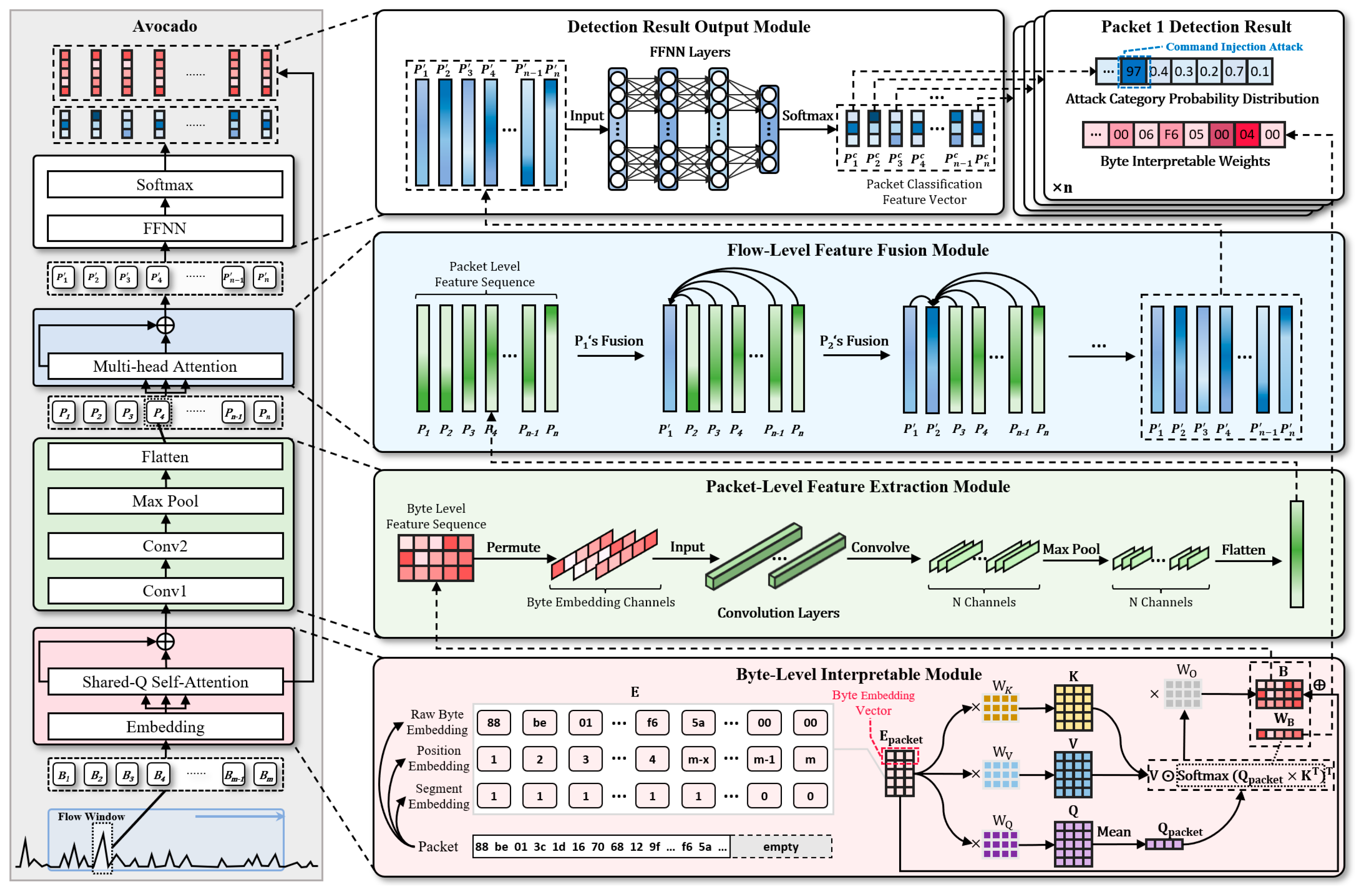 - We propose Avocado, a novel fine-grained intrusion detection framework for ICS. It constructs multi-level byte–packet–flow representations to enhance the ACC and granularity of stealthy attack detection.