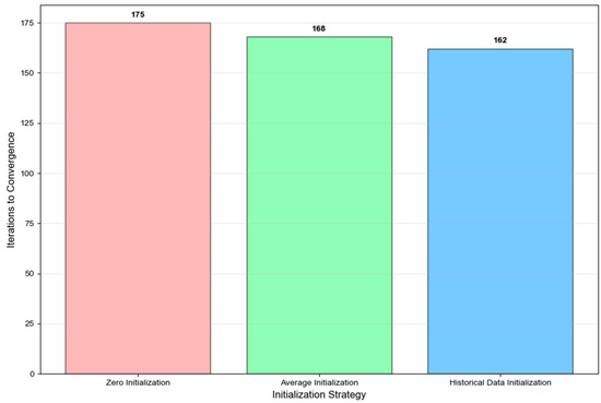 Figure 13 compares the impact of three initialization strategies on the convergence performance of the algorithm. Zero initialization requires 175 iterations, reducing the average initialization to 168 iterations, while the best initialization based on historical data only requires 162 iterations. Although the number of iterations for different initialization strategies varies, all strategies can converge to the same optimal solution, proving the insensitivity of the algorithm to initial conditions.