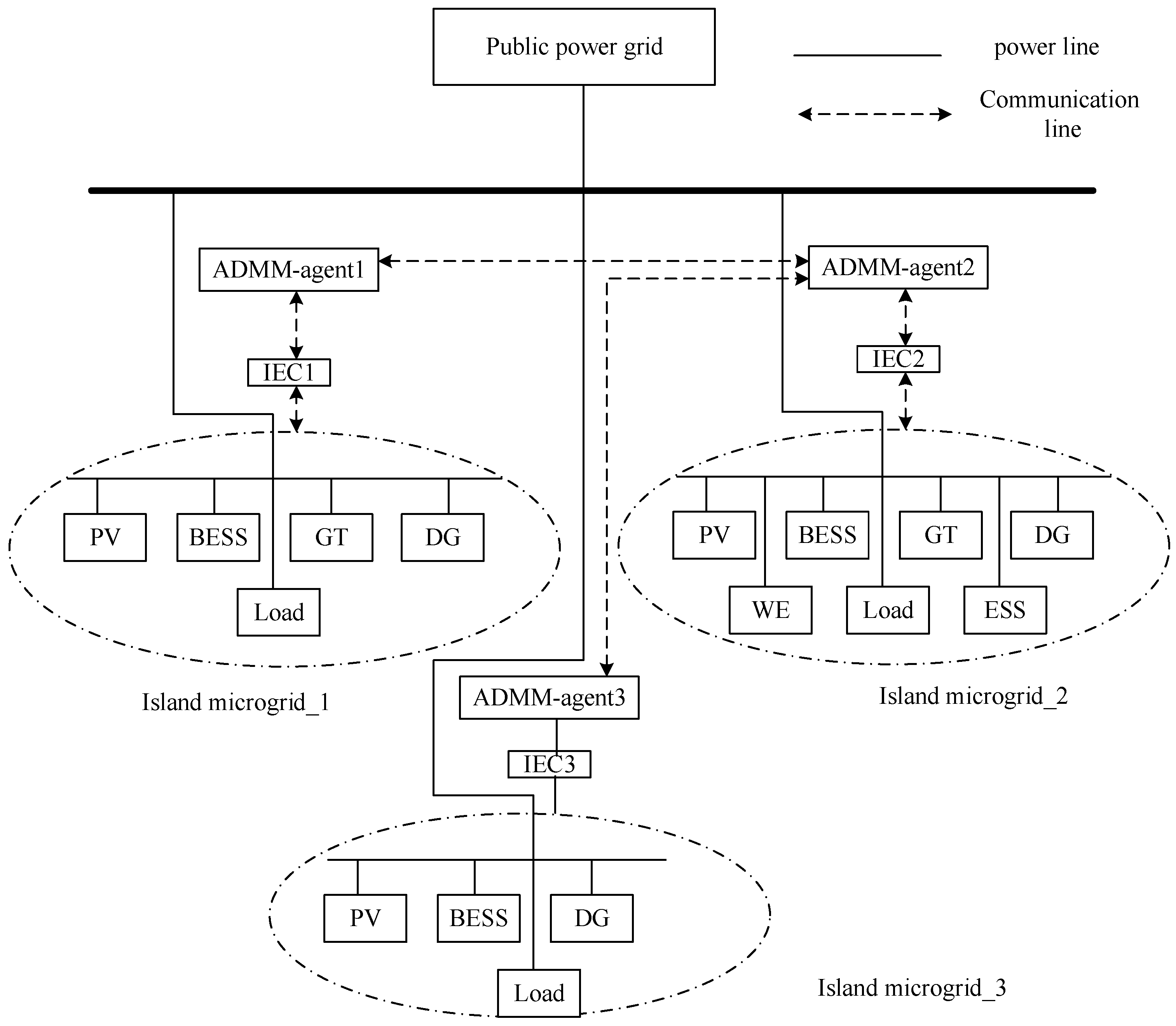 12], introduces a distributed algorithm based on the ADMM for managing multiple microgrids, enhancing the algorithm’s efficiency and scalability. Reference [