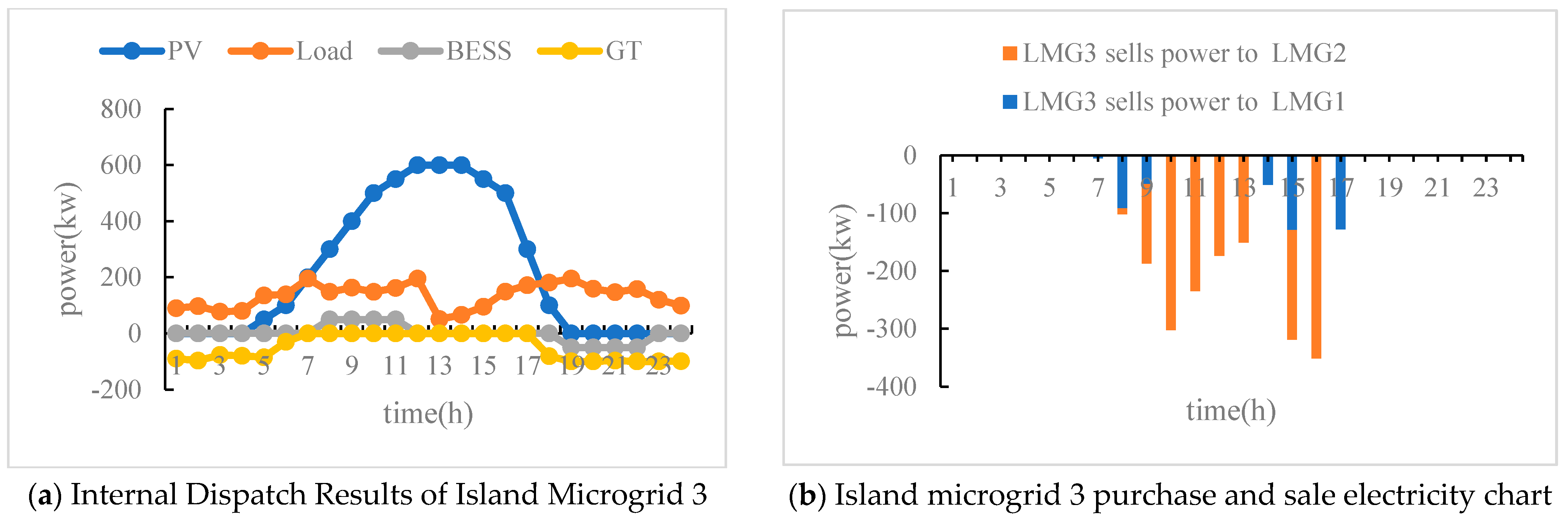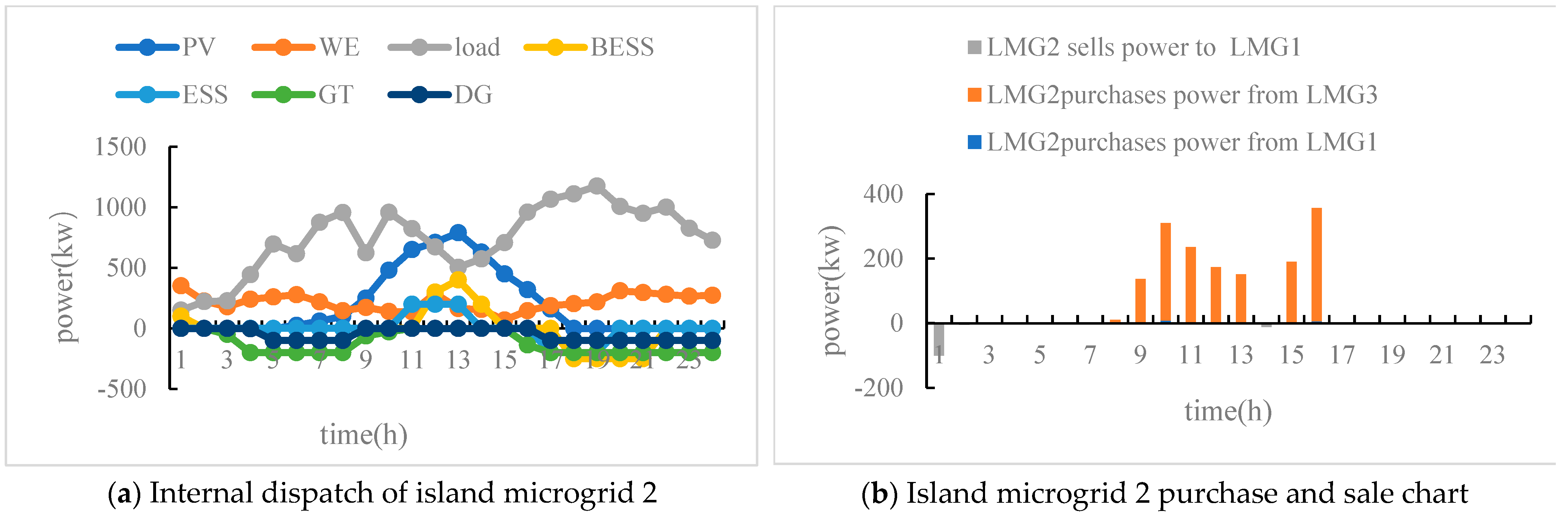 t) signifies that the island microgrid is procuring electricity from the distribution network, whereas a negative value suggests that the island microgrid is supplying electricity to the distribution network. The magnitude of