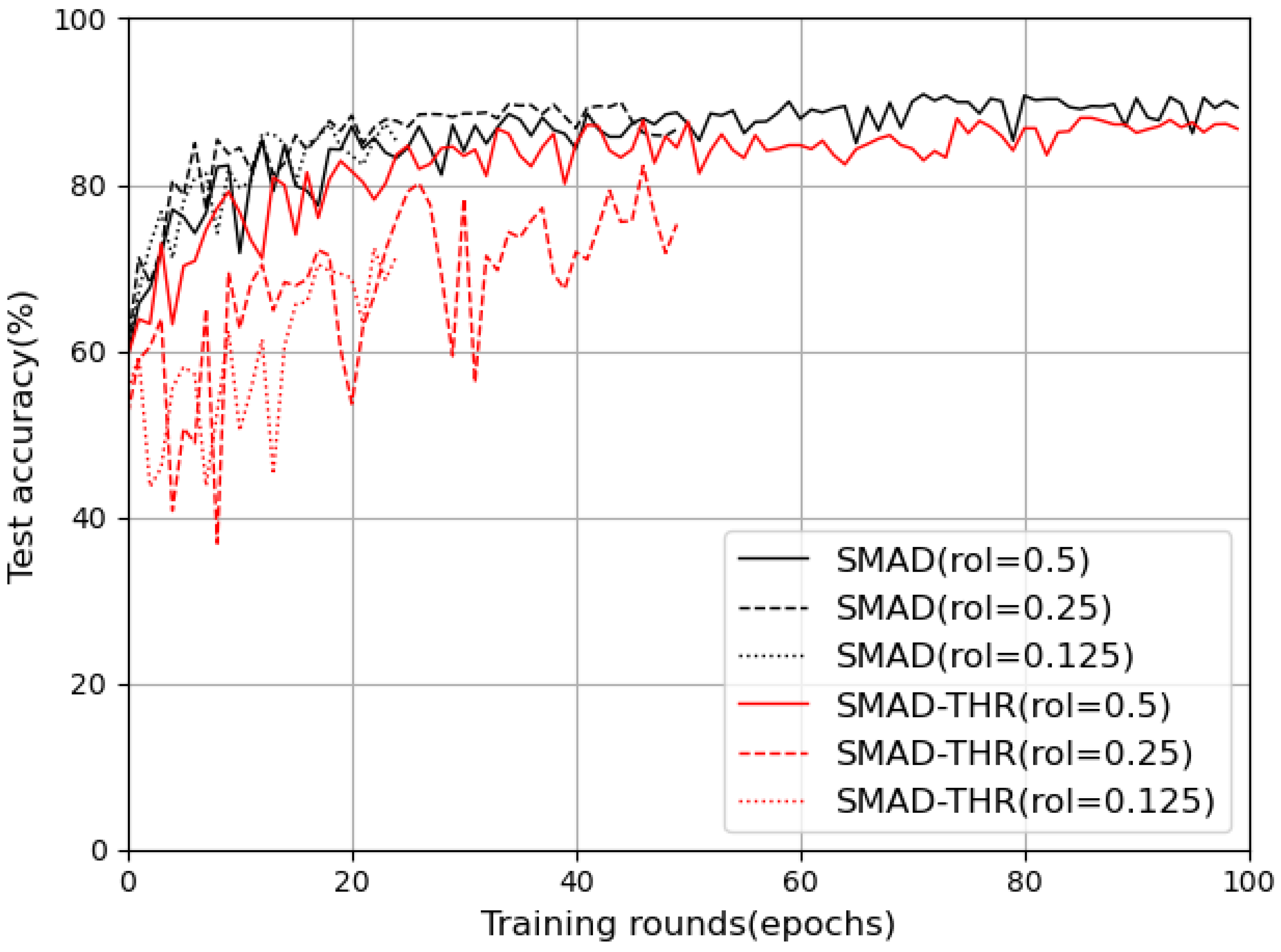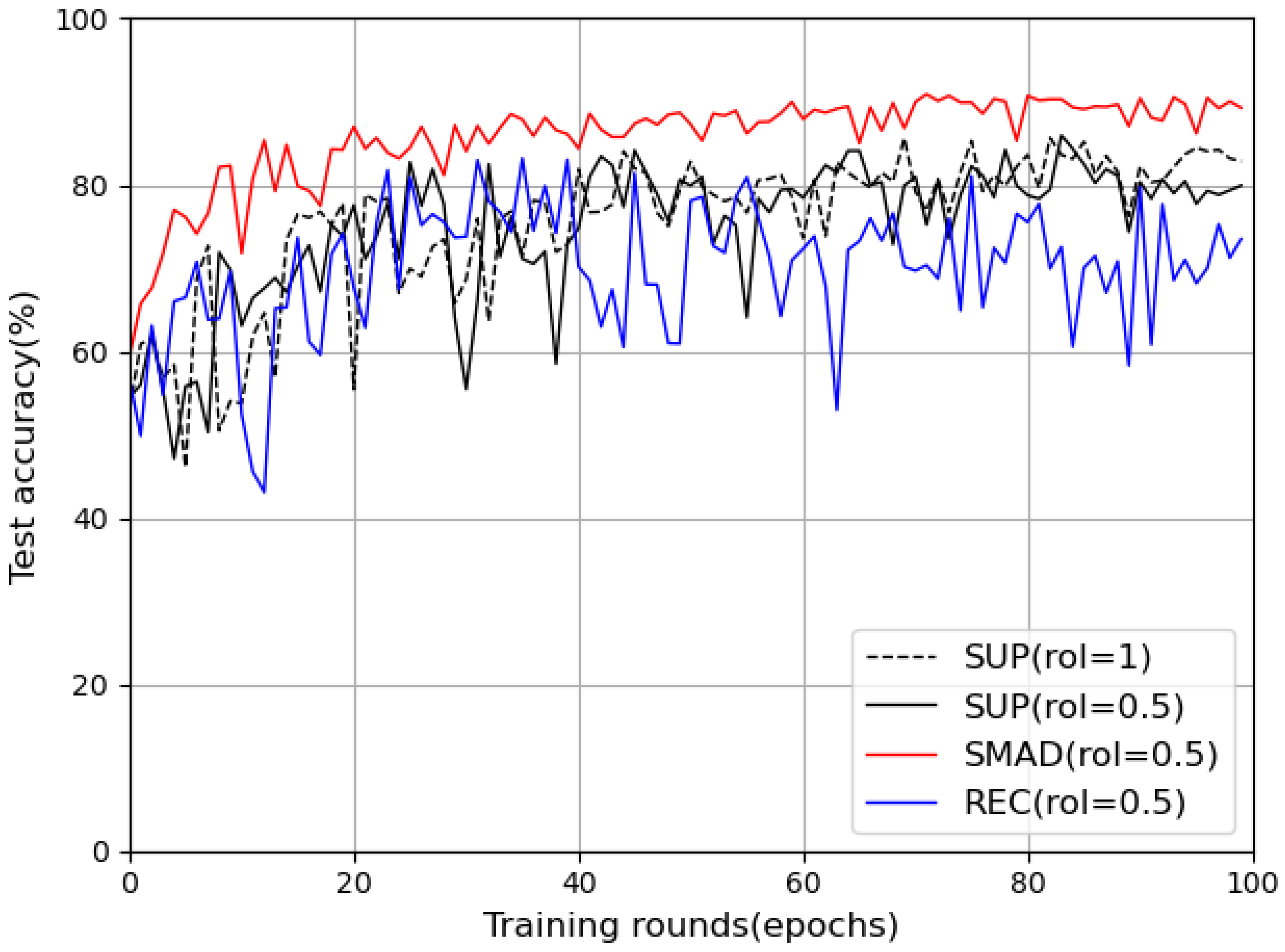 | SMAD (0.125) | 89.4% ± 0.6% | 87.2% ± 0.8% | 88.7% ± 0.5% | 87.8% ± 0.7% |