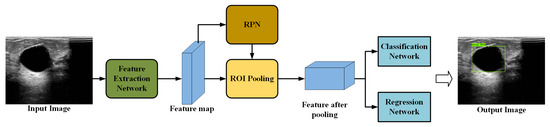 Faster R-CNN, which evolved from R-CNN and Fast R-CNN [22], has become one of the main methods for target detection. Figure 1 shows the standard Faster R-CNN framework, which consists of four main components: feature extraction network, region proposal network (RPN), RoI Align, and classification and regression networks.