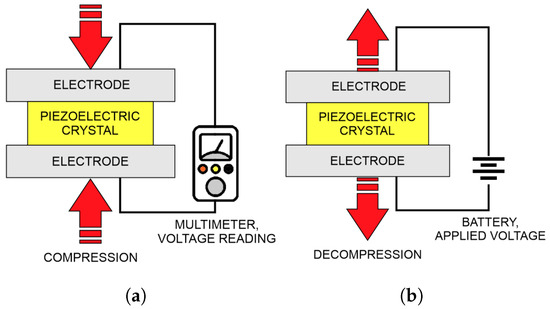 (a) Direct piezoelectric effect; (b) reverse piezoelectric effect.