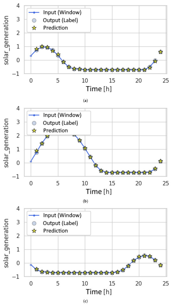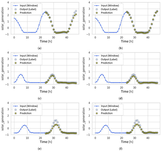 In addition, preprocessing the time signal with the sine/cosine transformation significantly helped improve model performance. Representing temporal features, such as time of day or day of year, using these circular transformations allowed models to capture the periodic nature of solar power generation. This signal preprocessing helped the models to generalize across different seasons and times of day, improving the accuracy of short- and long-term forecasts. Without this transformation, the models were unable to uncover recurring seasonal patterns from linear temporal data.