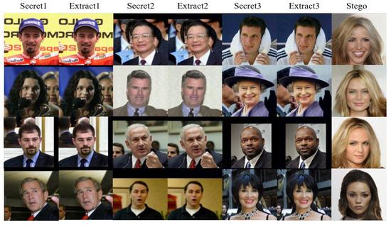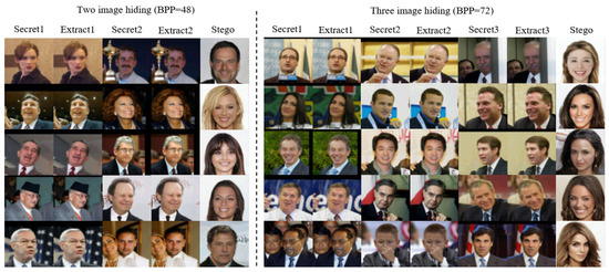 ) hidden in the same stego image, the generated stego images remain natural. Moreover, the recovered secret images are nearly lossless. The related extraction of multiple image hiding is given in