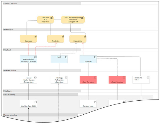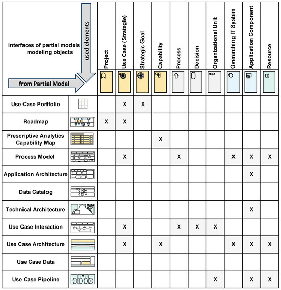 The seamless integration of AI and analytics into production systems—and their architecture—is a current research topic [59] (p. 57). To successfully introduce analytics use cases, both IT and business perspectives must be considered during planning and management [37,54,60] (p. 79). Consequently, an architecture-based perspective on analytics use cases is recommended. EAM represents a systematic and holistic approach to planning, design, and integrating technical structures within organizations [61] (p. 144).
