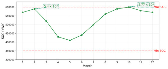 Energy storage SoC limits. To preserve emergency reserves, the state of charge (SoC) of the storage system must remain above 30% and below 95% at all times: