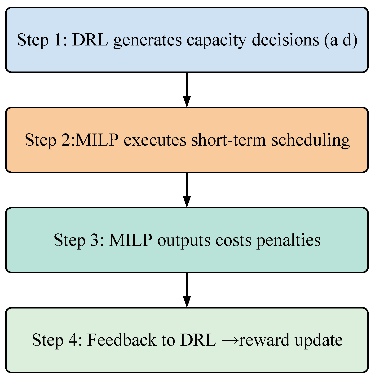 To further illustrate the effectiveness of the proposed DRL–MILP framework, a comparative analysis was conducted against the Hammerstein model, which is a classical approach widely used for nonlinear dynamic system identification and scheduling. As reported in prior studies, the Hammerstein structure is effective in modeling weak nonlinearities and dynamic responses of energy systems under simplified operating conditions. However, when applied to the hospital integrated energy system (HIES), its performance is constrained by the high dimensionality of decision variables and the stringent medical reliability requirements.