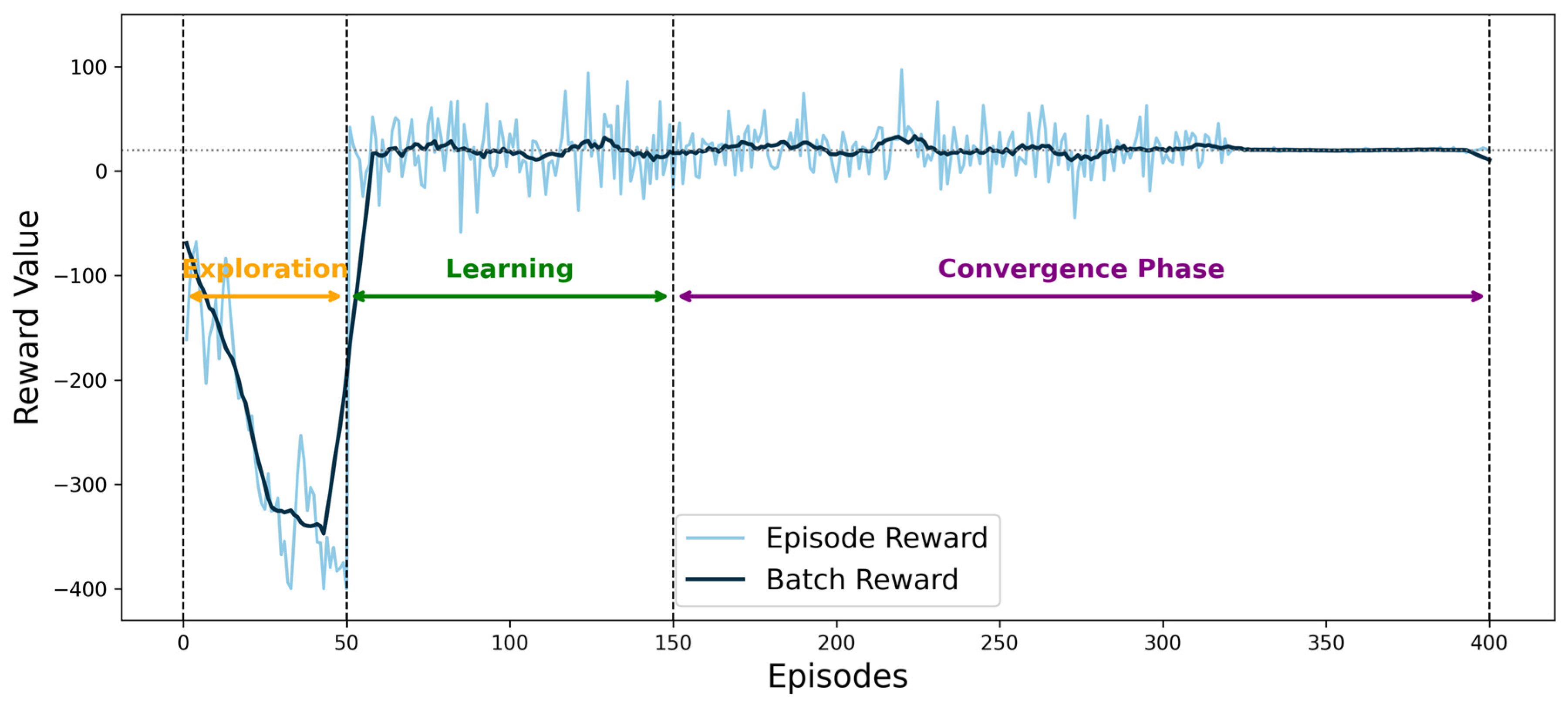 Notably, at episode 150, the agent successfully identifies a sharp increase in winter heating demand, resulting in a 23% boost in reward. Furthermore, by episode 320, the agent significantly improves the storage reserve strategy during surgical peak hours, leading to a stabilization of the reward curve.