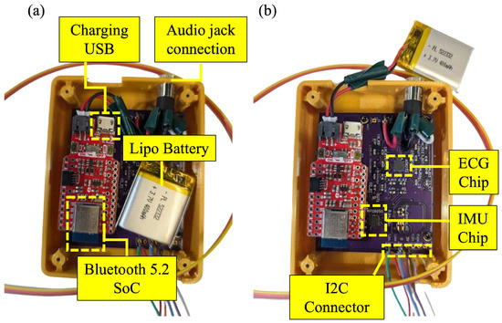 Custom device: (a) Bluetooth and power unit, and (b) custom PCB.