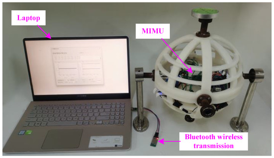 The self-made spherical platform and bracket are shown in Figure 8. The designed MIMU is placed at the center of the spherical platform, and the spherical platform is rotated according to the designed oriented rotation scheme.