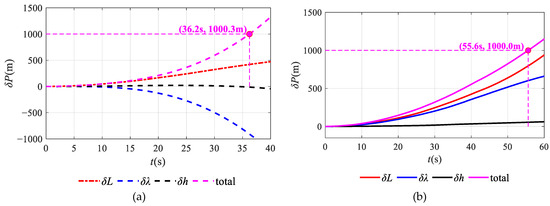 Figure 5a shows that as for the initial position within 60 s, the observability of zero bias bgx and bgy for gyroscopes is about 16; thus, they are fully observable. And as for the moment between 150 s and 250 s, the observability of zero bias bgz for gyroscope is about 16; also, in these moments, bgz is fully observable.