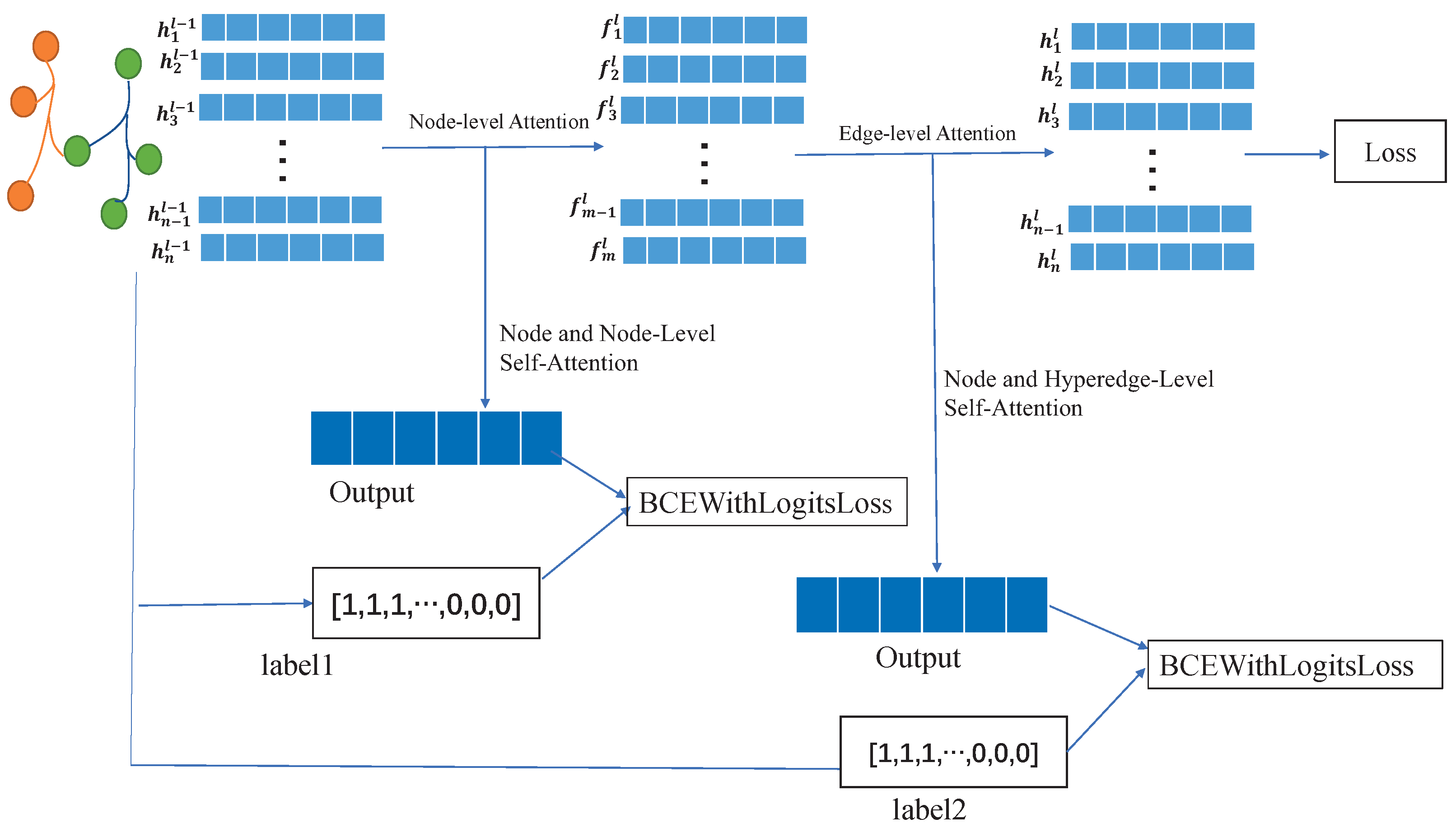 3.2. Hypergraph Neural Network with Attention and Self-Attention