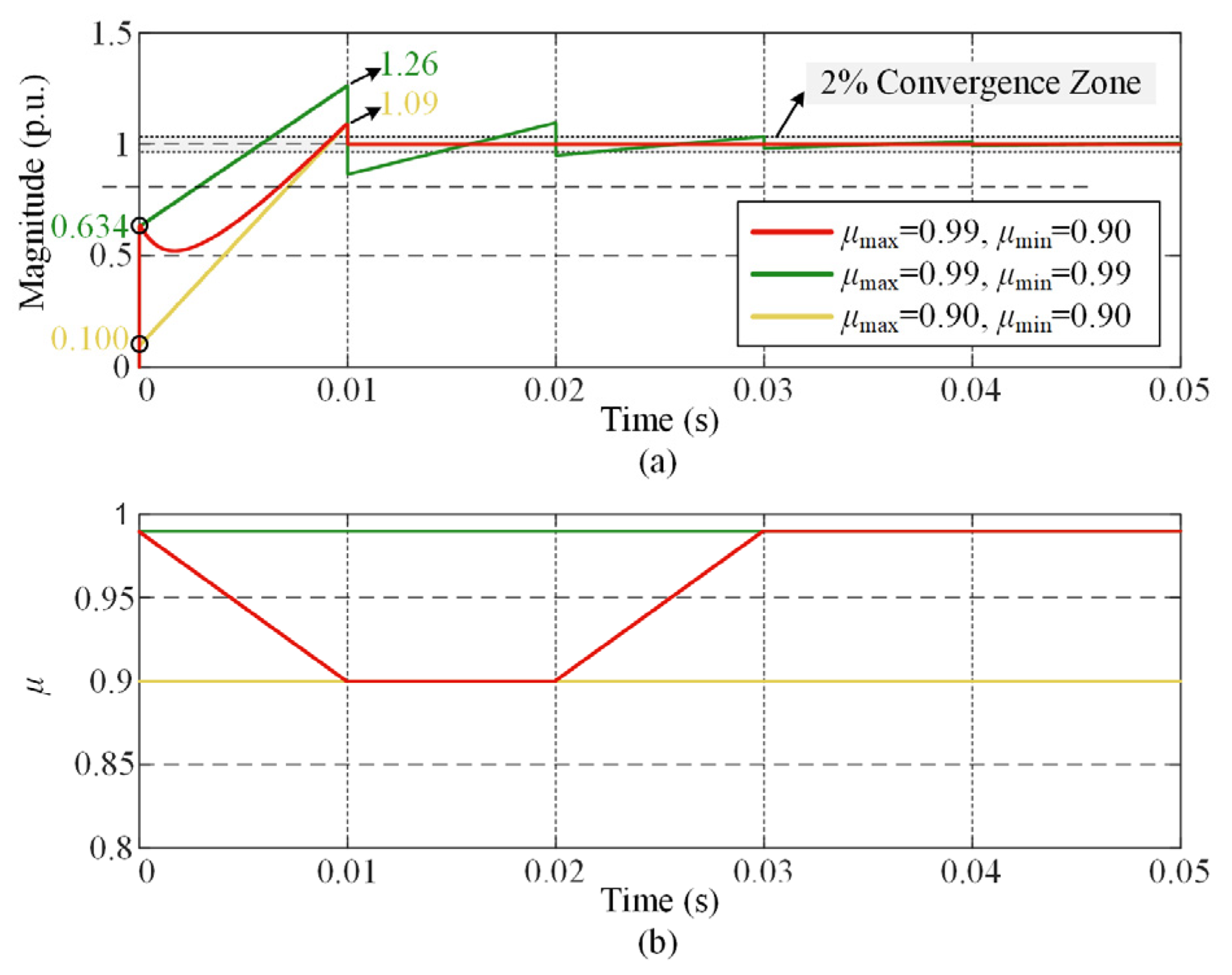| Injected harmonic disturbance | 0.10 p.u. 3rd positive-sequence harmonic 0.05 p.u. 5th positive-sequence harmonic |