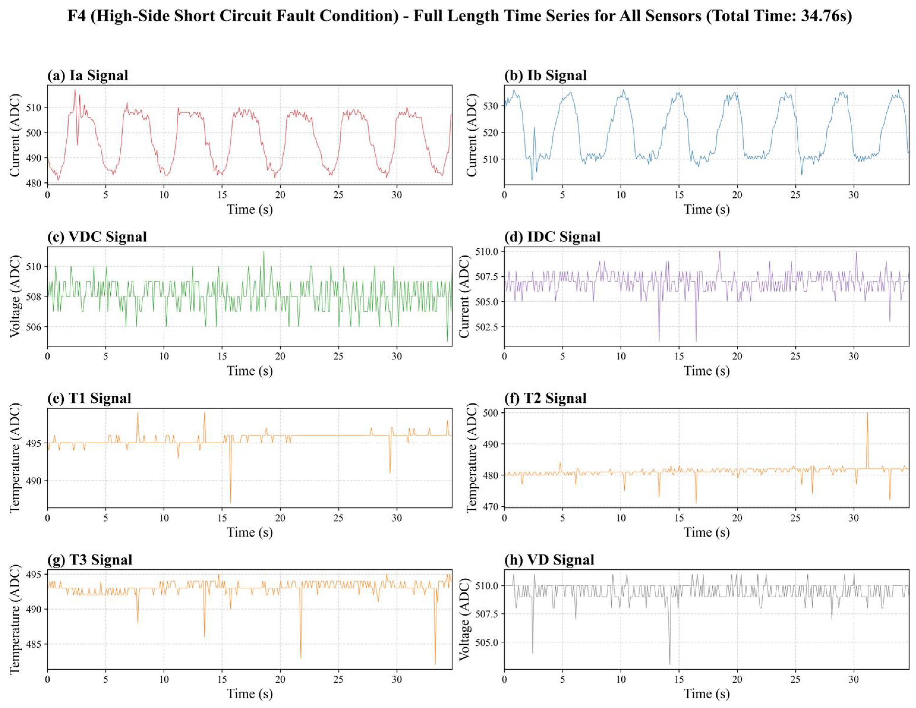 - Sensor measurements: 8 raw sensor measurements (phase currents, DC bus voltage/current, temperature);