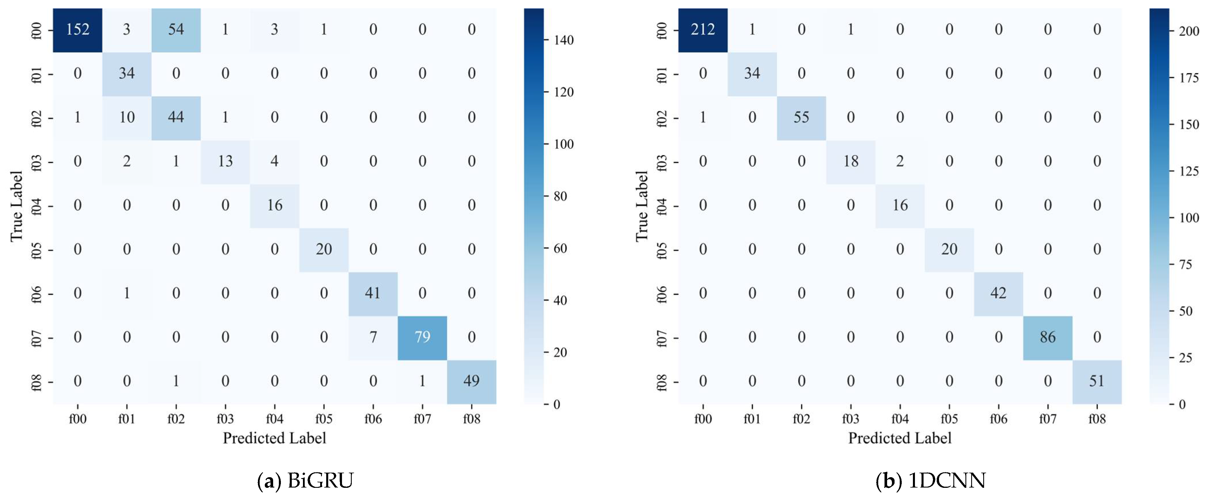 - This study presents a novel approach that advances the state-of-the-art in the field of industrial fault classification by demonstrating that a hybrid 1DCNN–BiGRU architecture can surpass both singular architecture deep learning methods (1DCNN, BiGRU, and Multilayer Perceptron (MLP)) and a conventional machine learning technique (Random Forest, RF).
