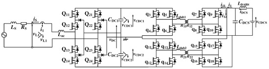 Circuit configuration of the proposed single-phase PCS composed of an NPC inverter and an IPOS-DAB converter.