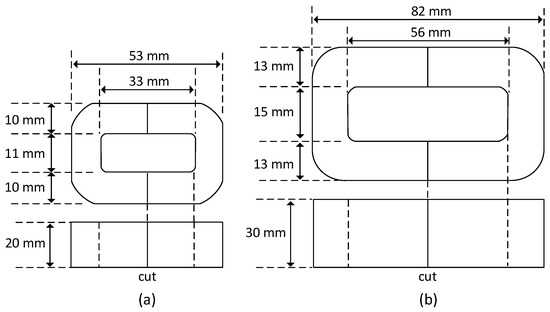 Dimensions of the cut cores: (a) CS-6.3, (b) CS-32.