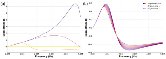 Data augmentation for the impedance specta: (a) data patterns in the same severity of cracks, (b) data augmentation within the same pattern.