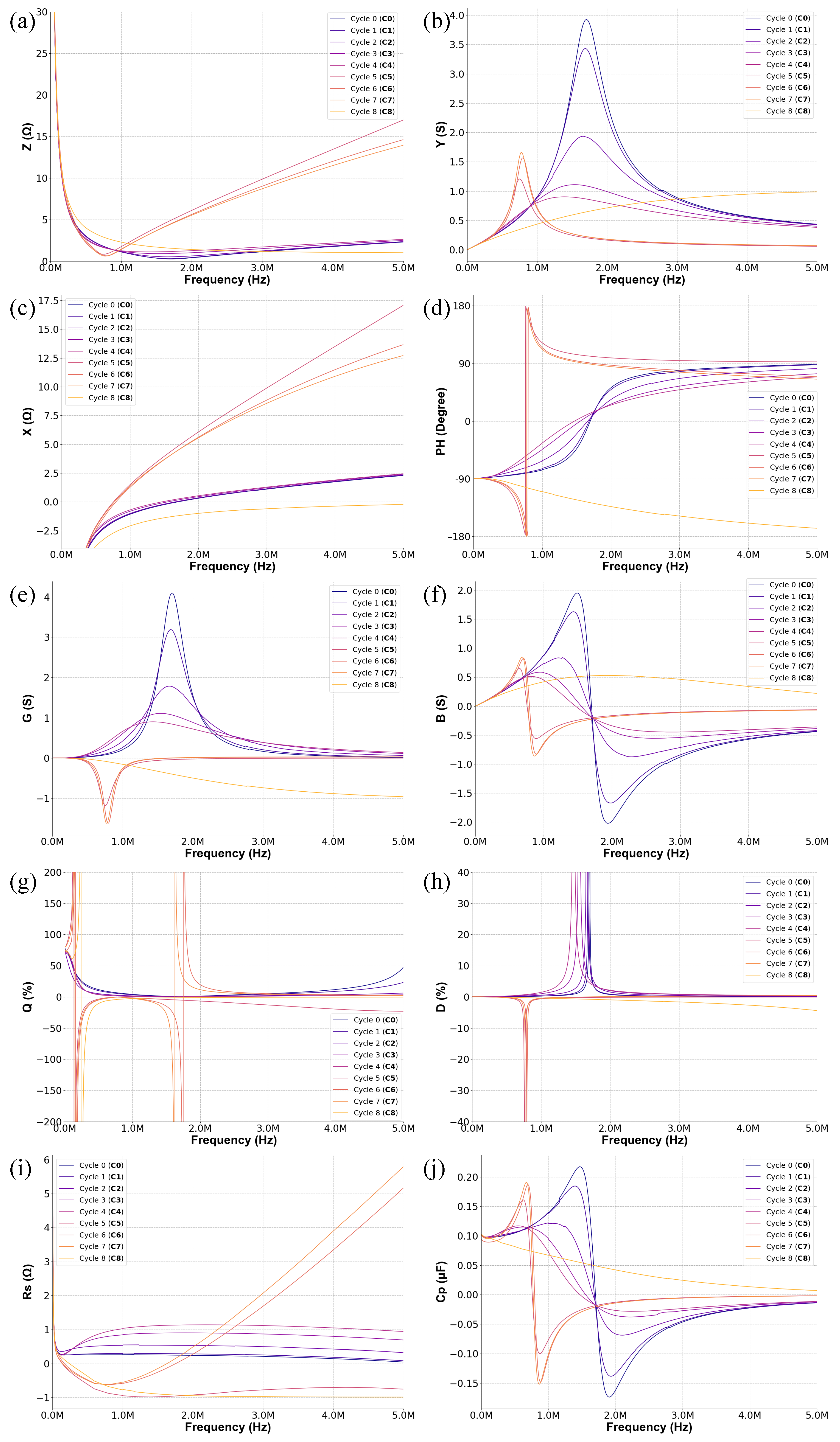 Model performance was assessed by independently analyzing 14 individual parameters measured from the impedance spectra with metrics such as accuracy. The learning outcomes by component and model are summarized in