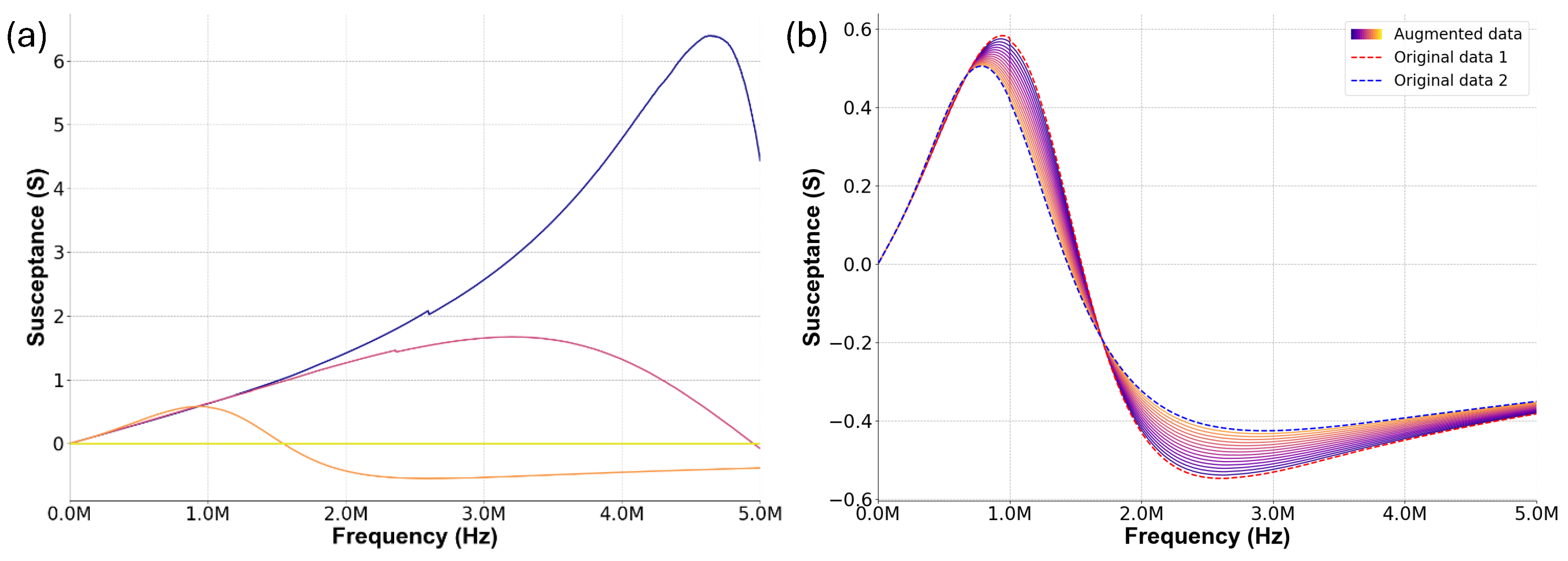 Figure 7b, 87,800 impedance spectrum data samples resembling the measured patterns were obtained. The augmented samples can preserve the original spectral distribution without introducing artificial patterns, thereby improving model generalization and reducing overfitting. Subsequently, the training dataset was created by combining 90% of the original data with 70% of the augmented data, while the validation dataset was constructed using 90% of the original data combined with 30% of the augmented data. The remaining 10% of the original data, unused in training and validation, was utilized as the test dataset to complete the overall dataset structure.