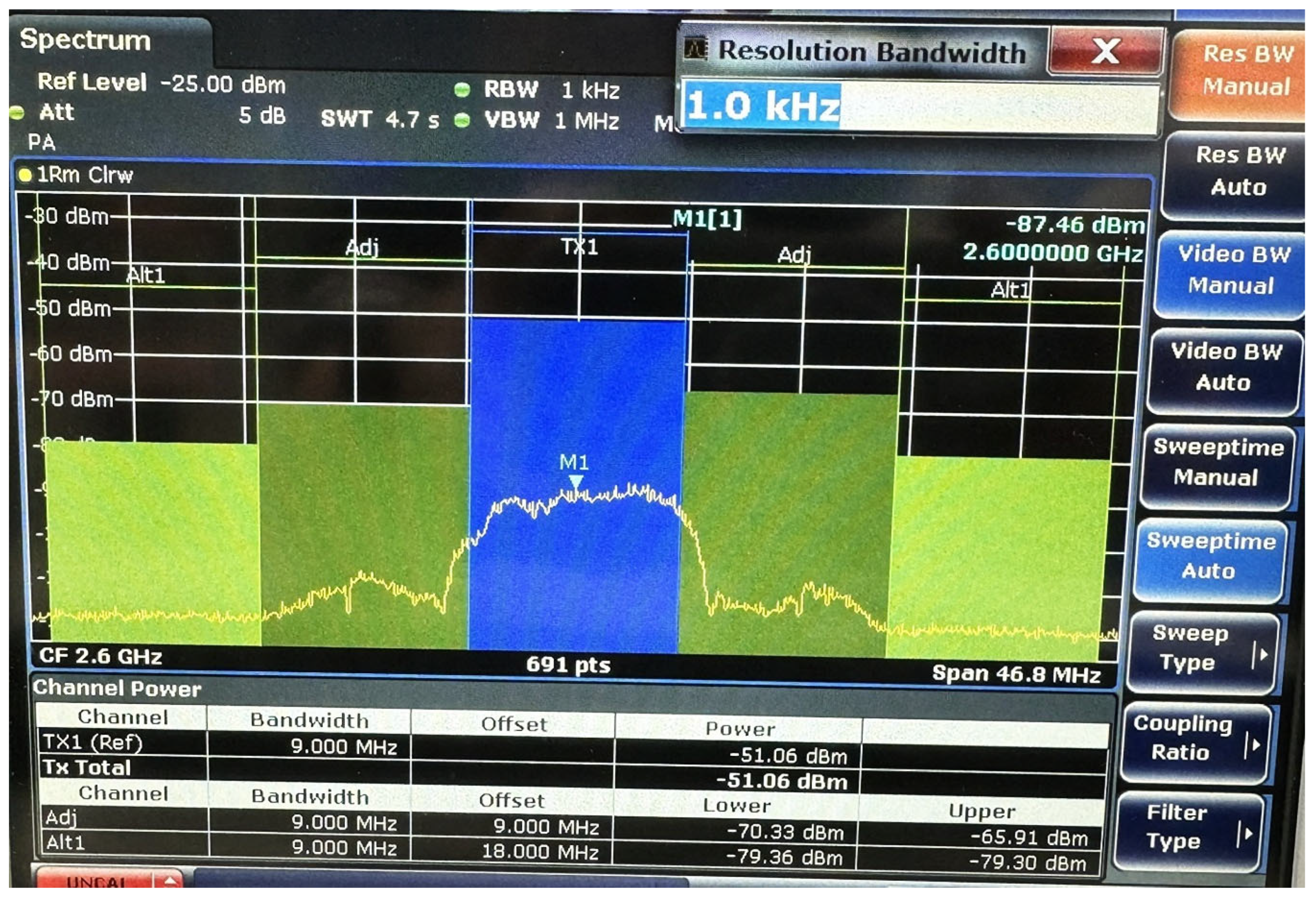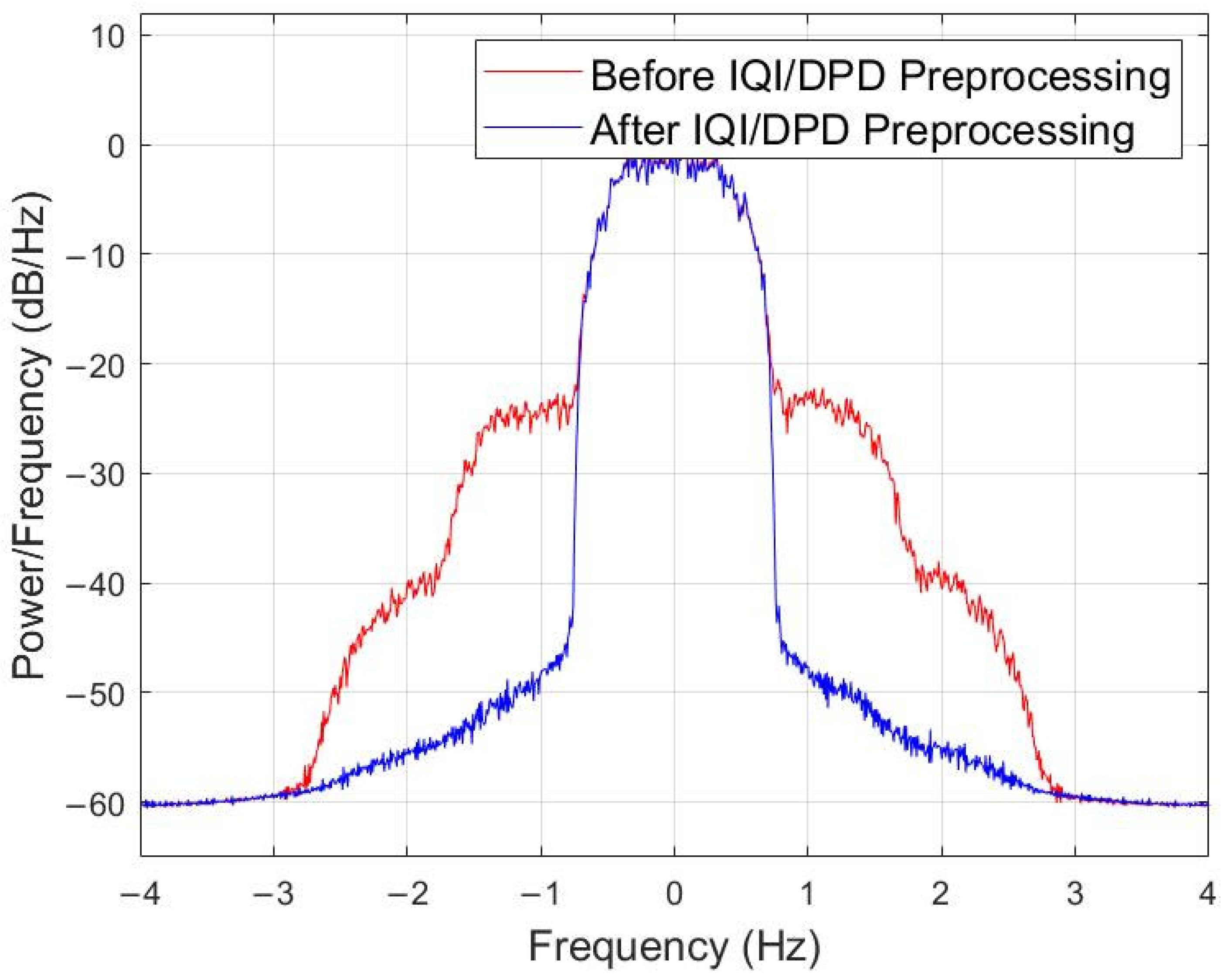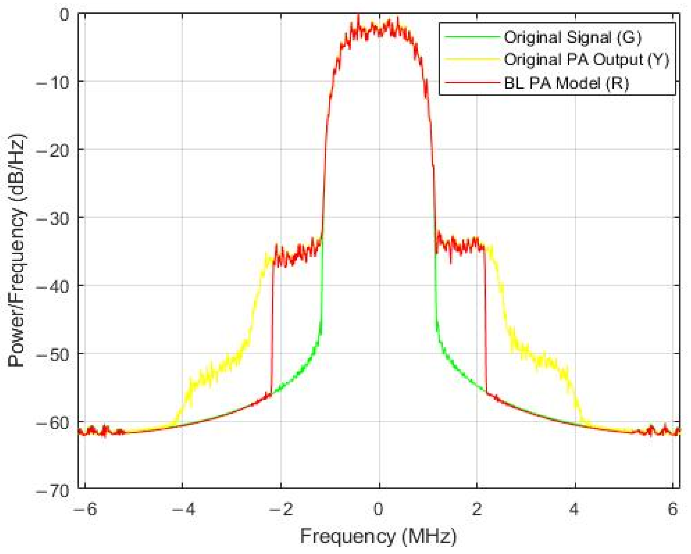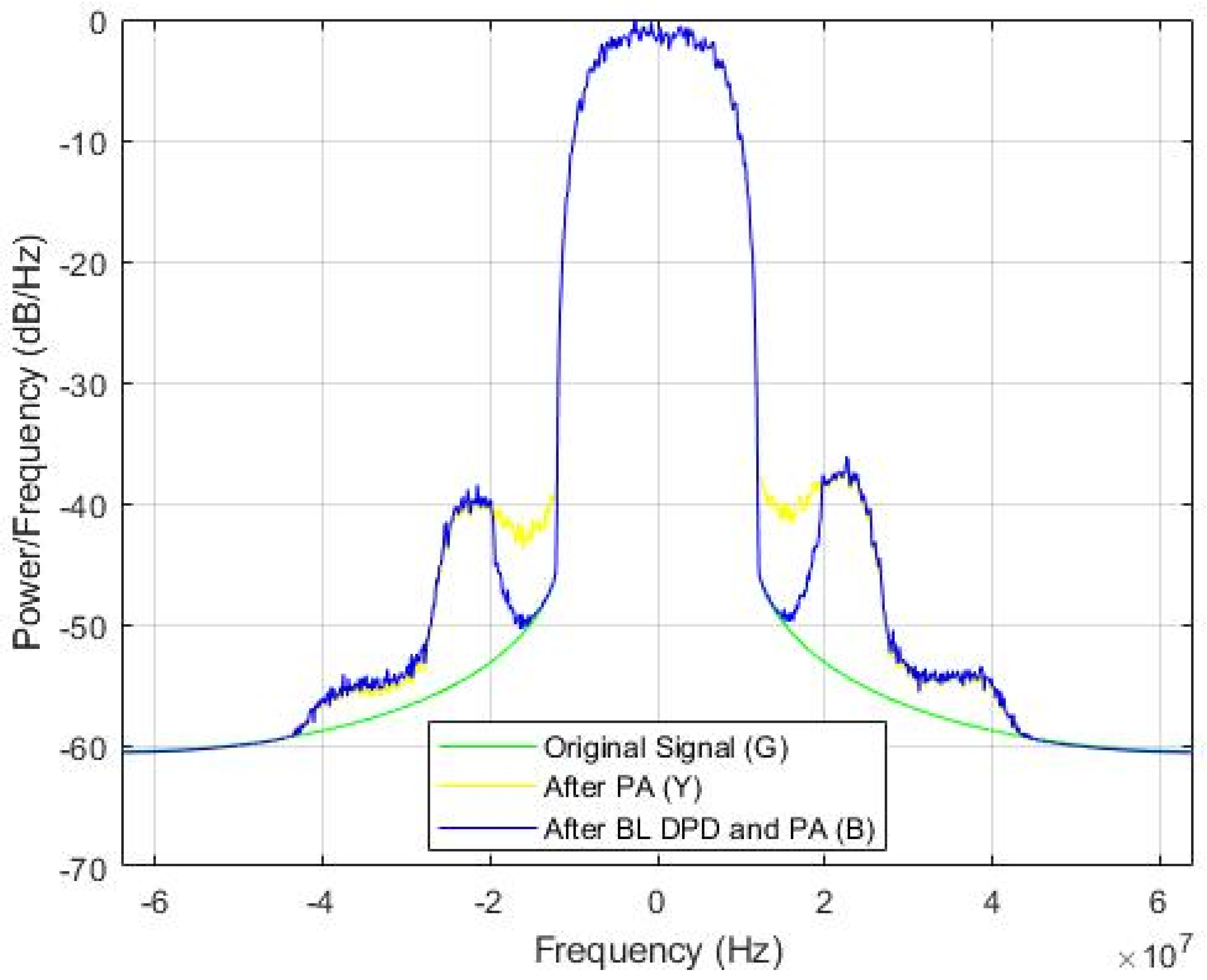 4.2.2. Experimental Validation of the Compensation for Nonlinear PA Response