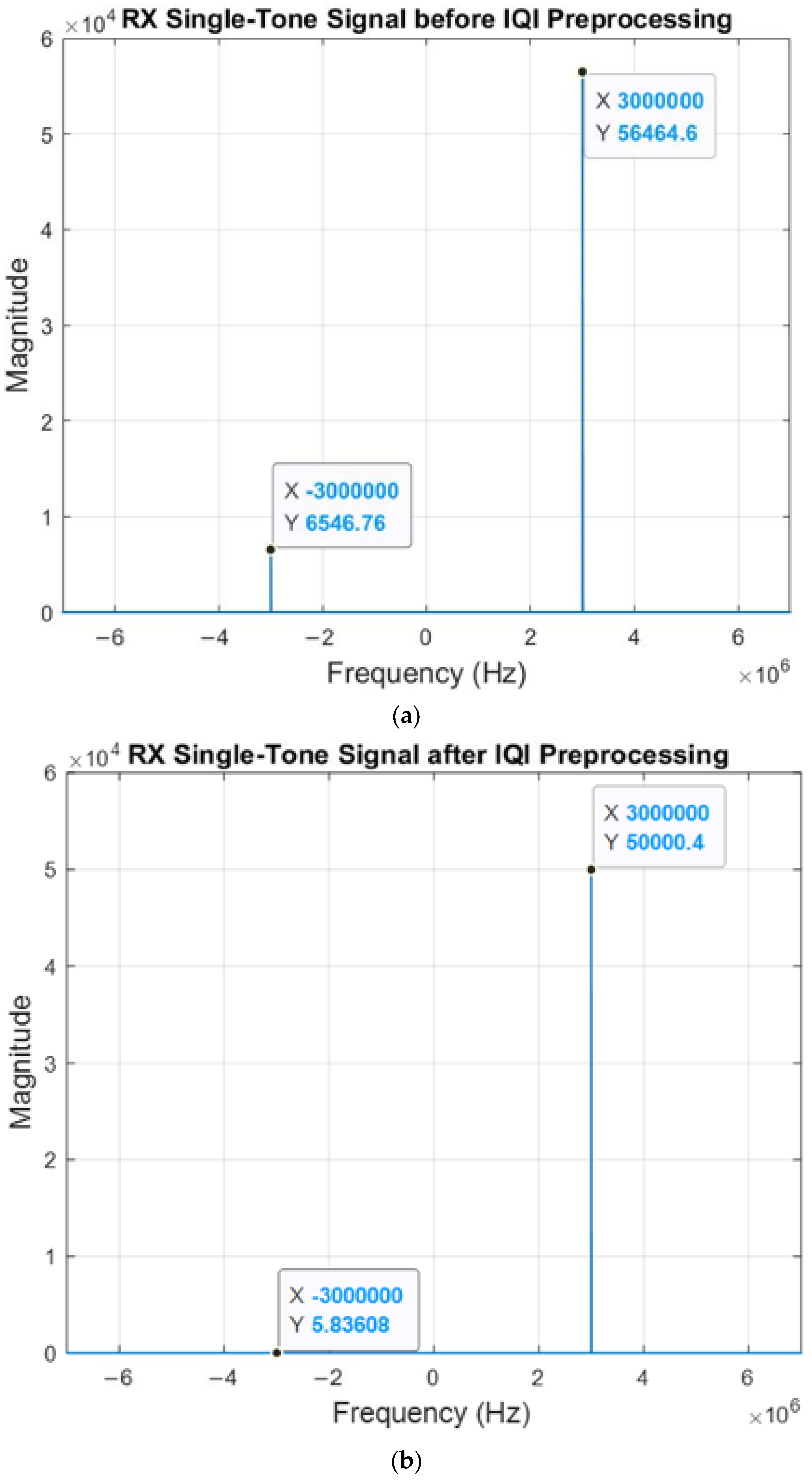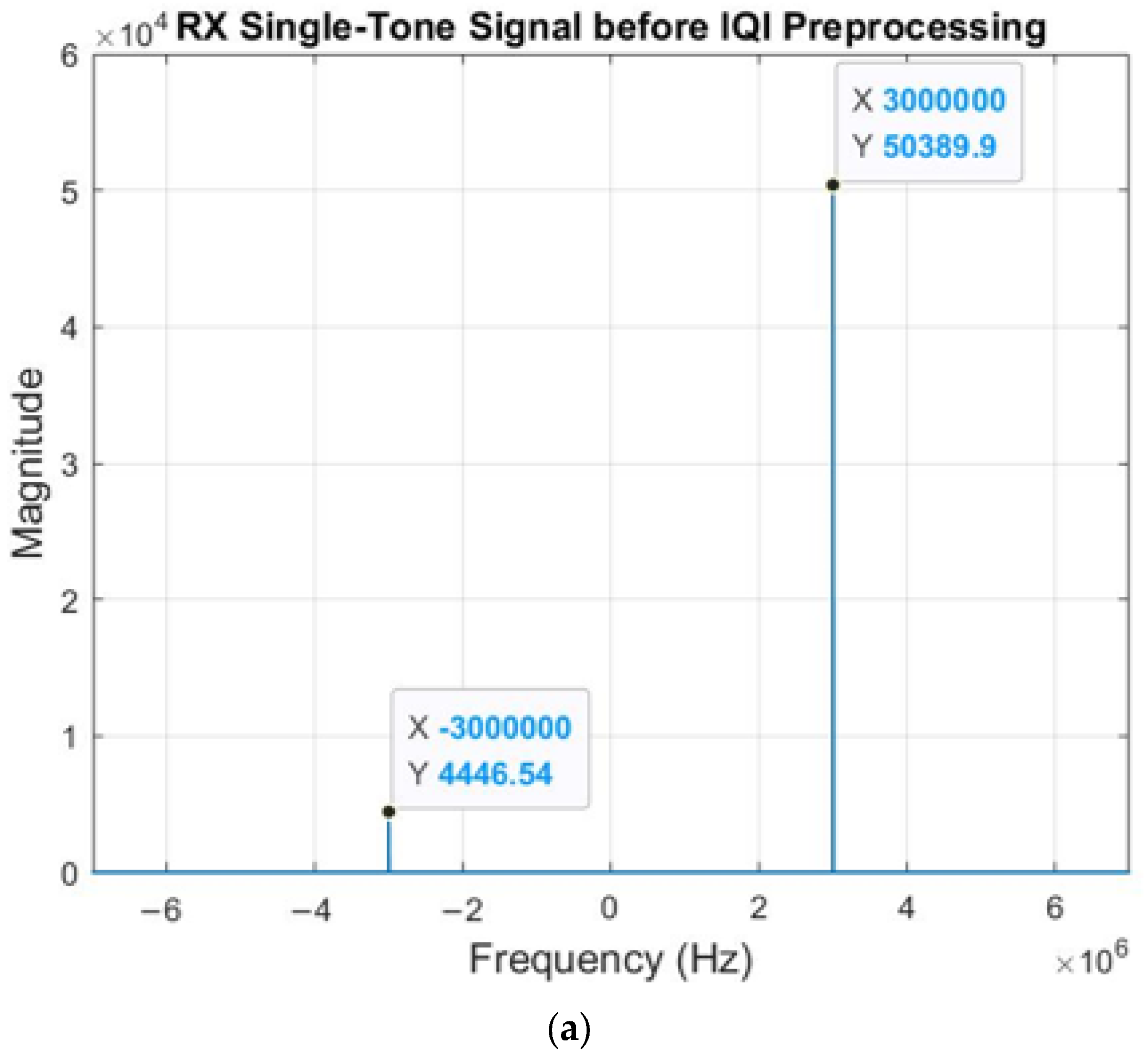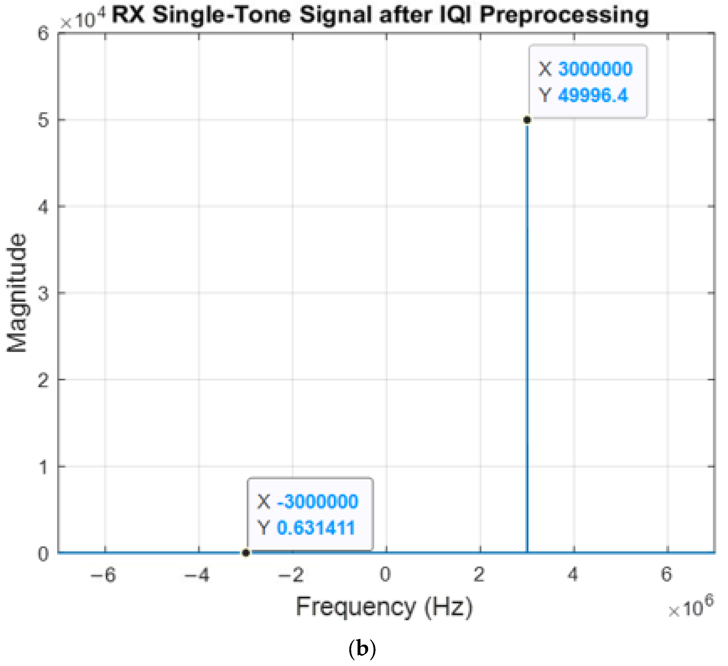4.2.1. Experimental Verification of the Elimination of RF IQ Imbalance
