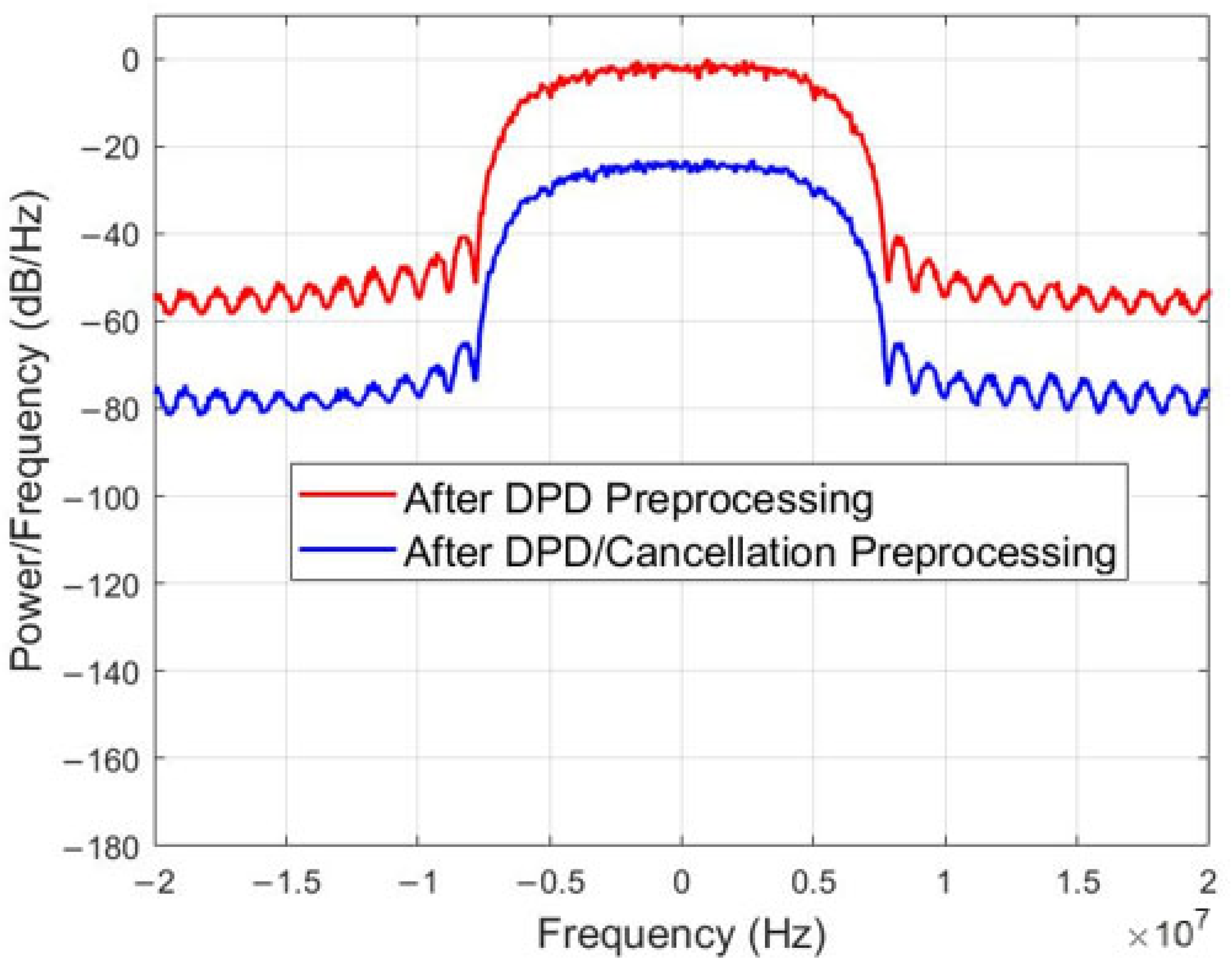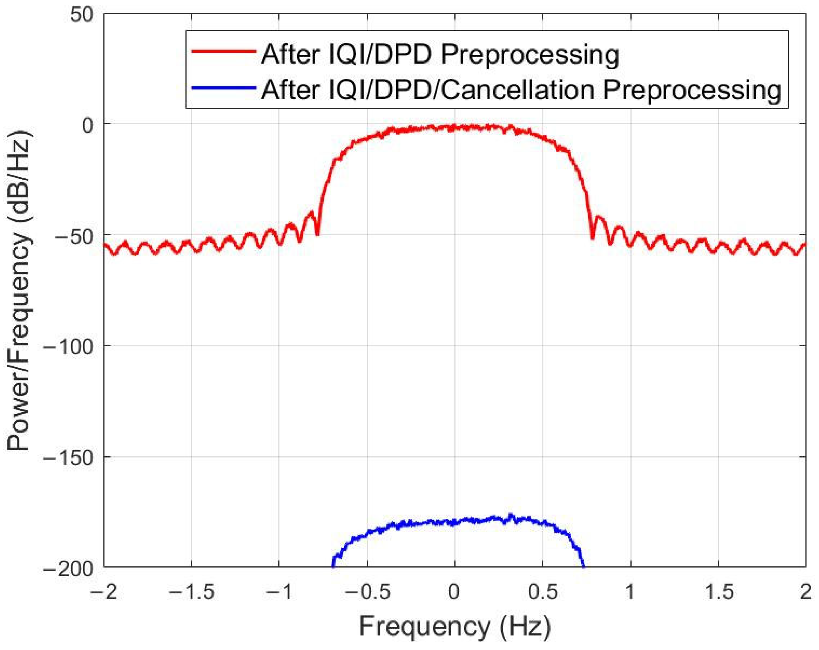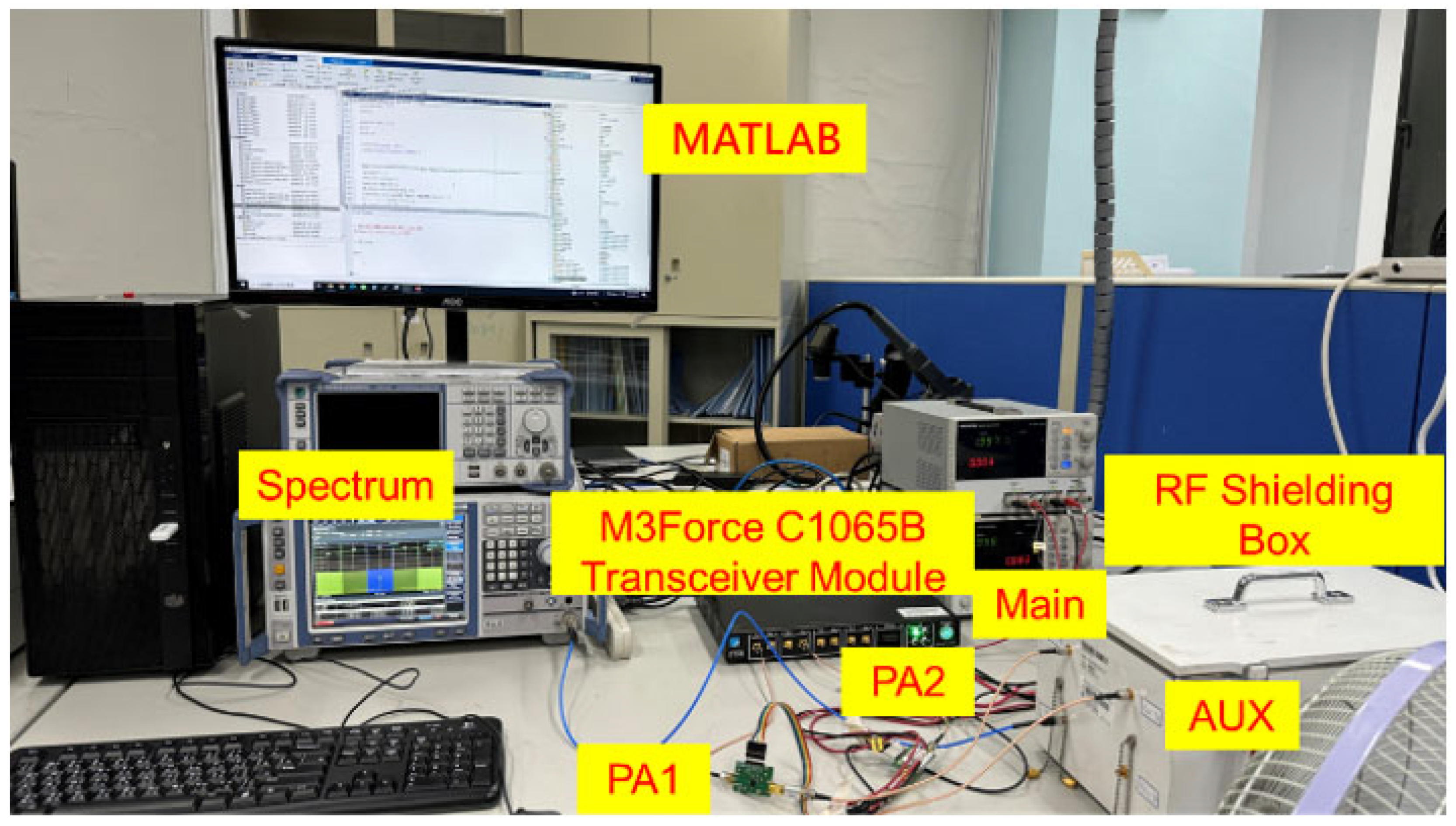 - This study experimentally validated the proposed method by using a software-defined radio platform, with distortion factor calibration specifically optimized for multiantenna full-duplex transceivers. The experimental results confirm that the proposed method can suppress the three aforementioned types of distortion, highlighting its practical viability in advancing full-duplex communication systems.