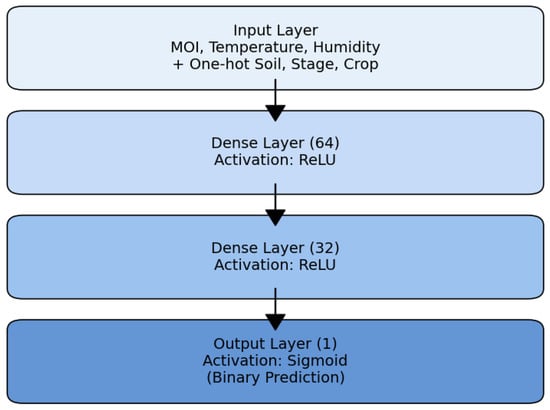 - Output (1 unit, Sigmoid; binary classification: irrigation required/not required)