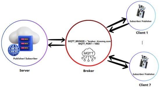 - Broker: a public MQTT broker (broker.hivemq.com, accessed on 18 March 2025, port 1883) was used for message exchange.