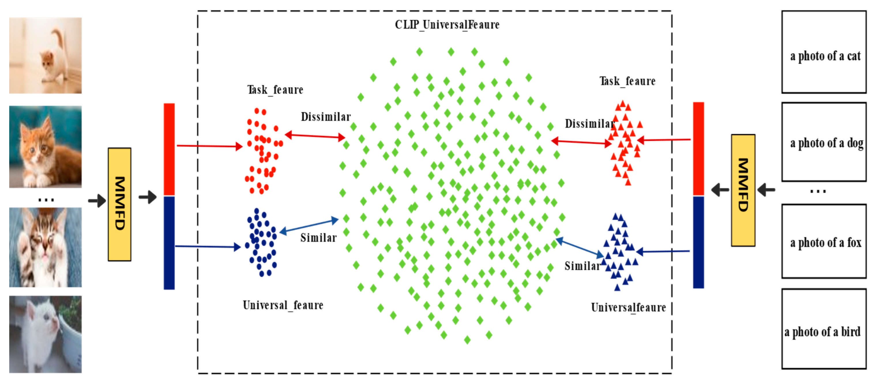 - A decentralized covariance dual-subspace decomposition method is developed to map visual and textual features into a shared subspace and a task-specific subspace. This design enables knowledge separation and collaborative modeling, effectively mitigating catastrophic forgetting of pre-trained knowledge and excessive feature coupling during task adaptation.