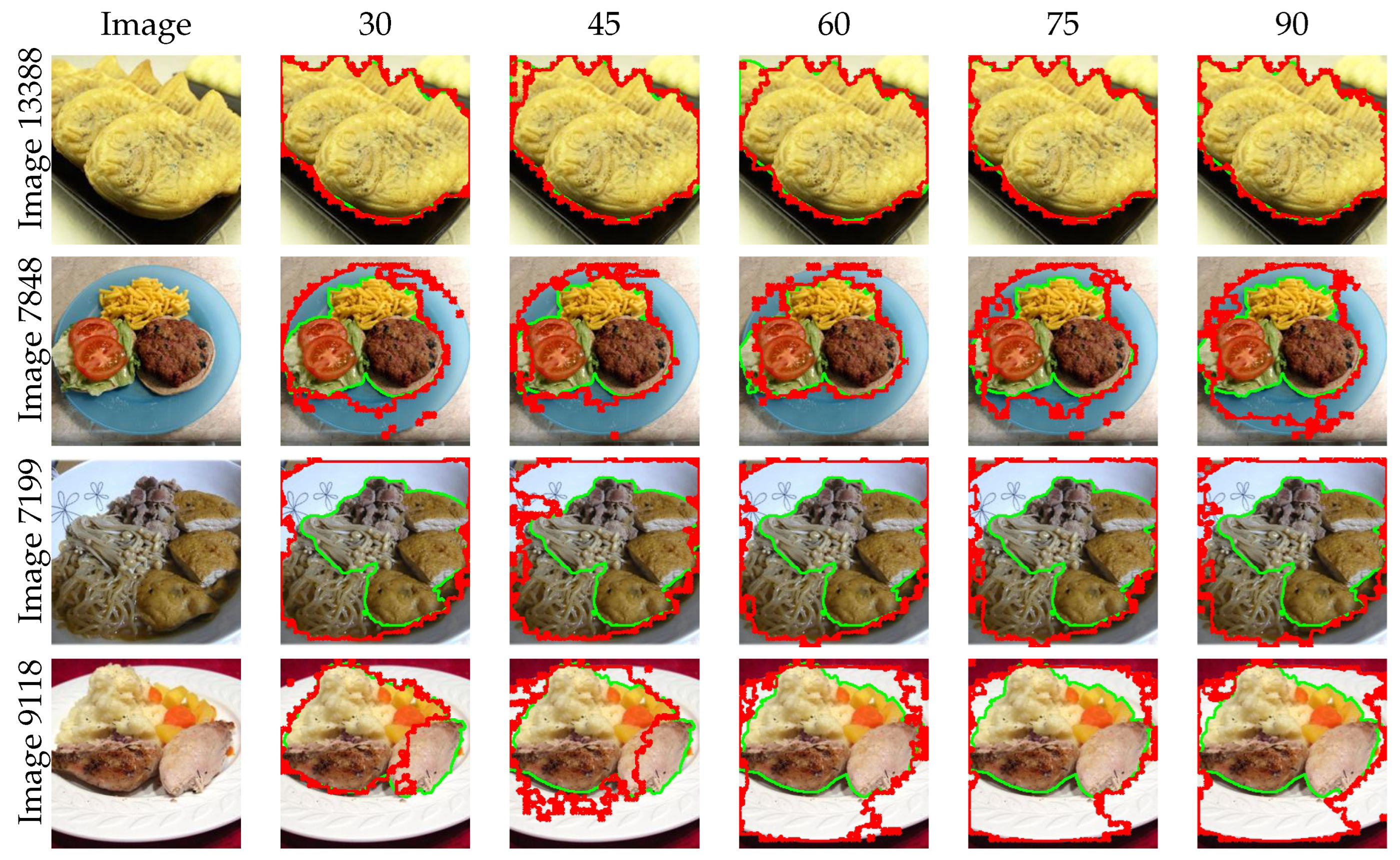 - Brufau Vidal, M.; Ferrer Campo, À.; Gavalas, M. Unsupervised Segmentation Using CNNs Applied to Food Analysis. Master’s Thesis, Facultat de Matemàtiques, Universitat de Barcelona, Barcelona, Spain, 2018. [Google Scholar]