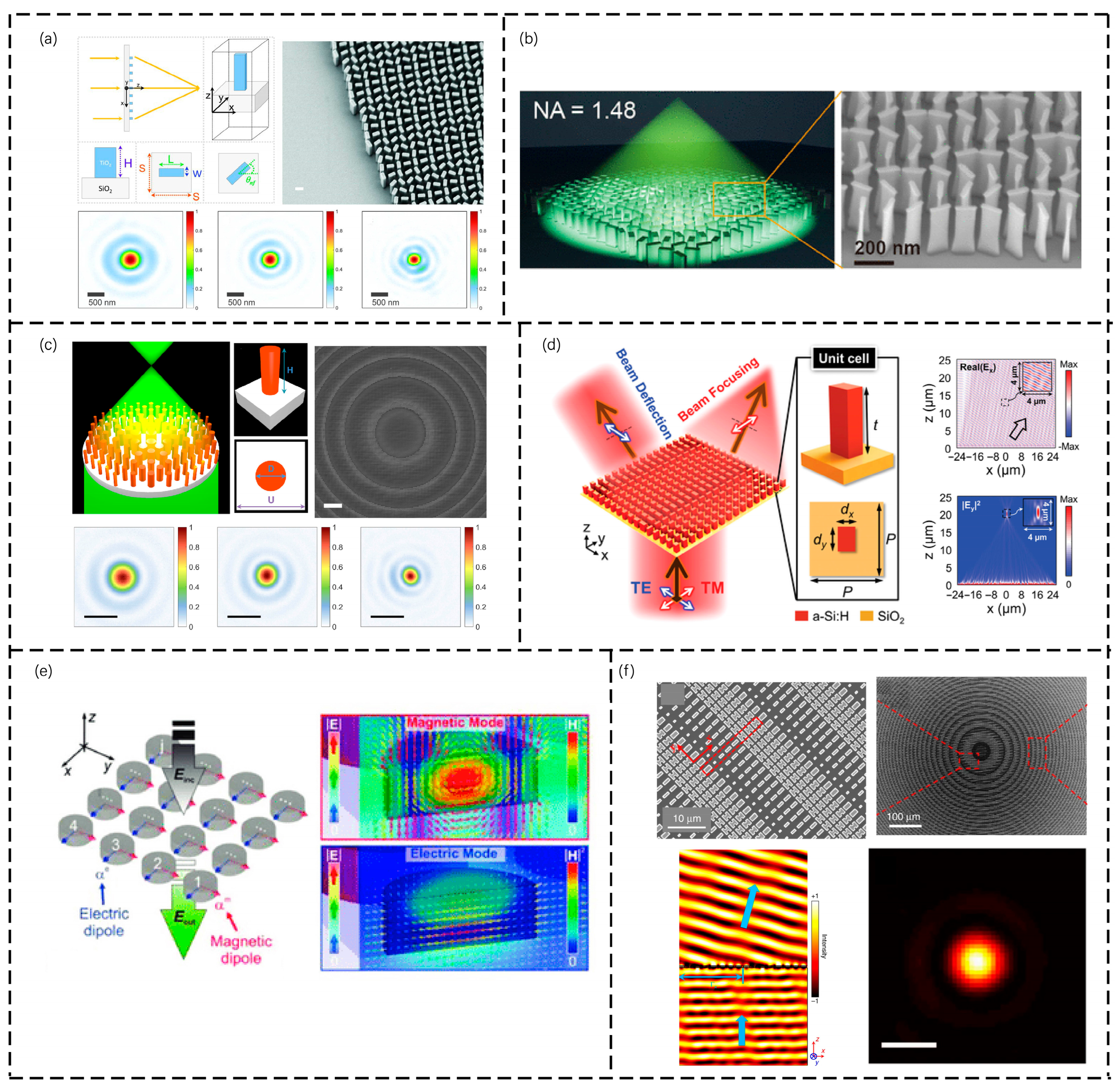| Si | 1300 nm 1550 nm 1800 nm | 7.5 mm | Nearly 10% | The focal spot approaches the diffraction limit | [54] |