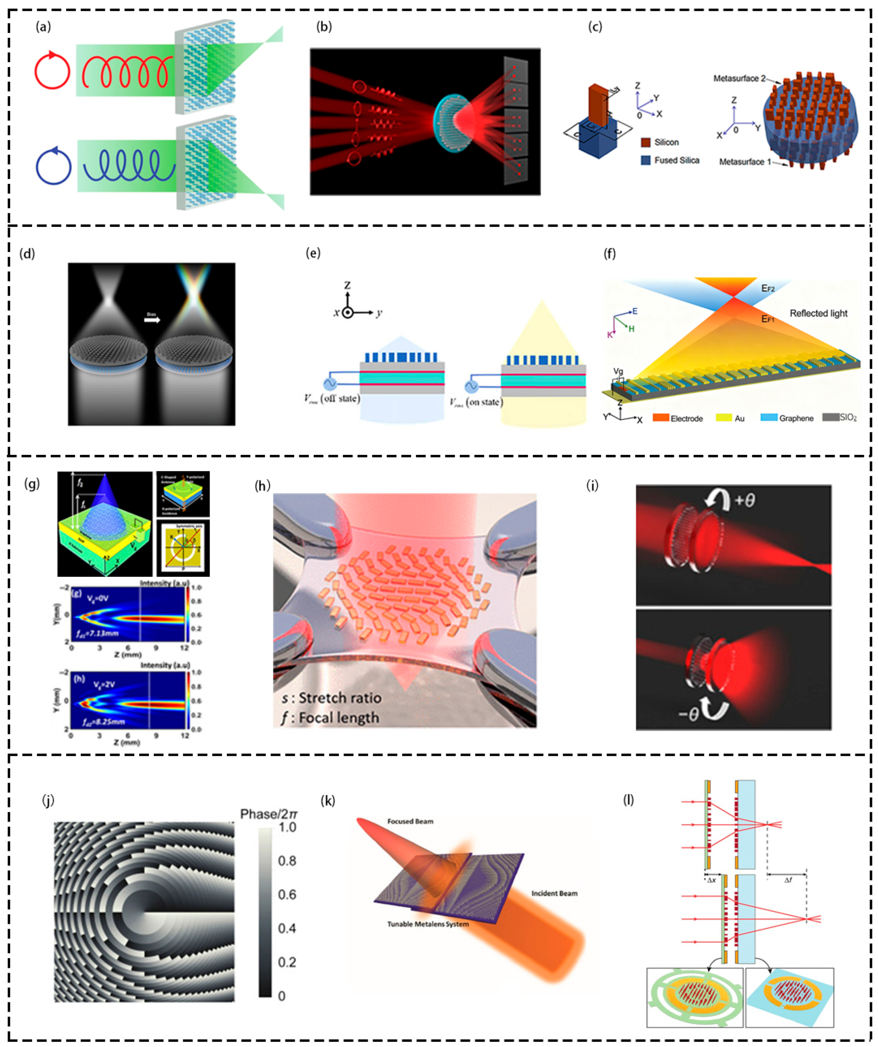 - Chen, Y.; Zhang, S.; Tian, Y.; Li, C.; Huang, W.; Liu, Y.; Jin, Y.; Fang, B.; Hong, Z.; Jing, X. Focus Control of Wide-Angle Metalens Based on Digitally Encoded Metasurface. Opto-Electron. Adv. 2024, 7, 240095. [Google Scholar] [CrossRef]