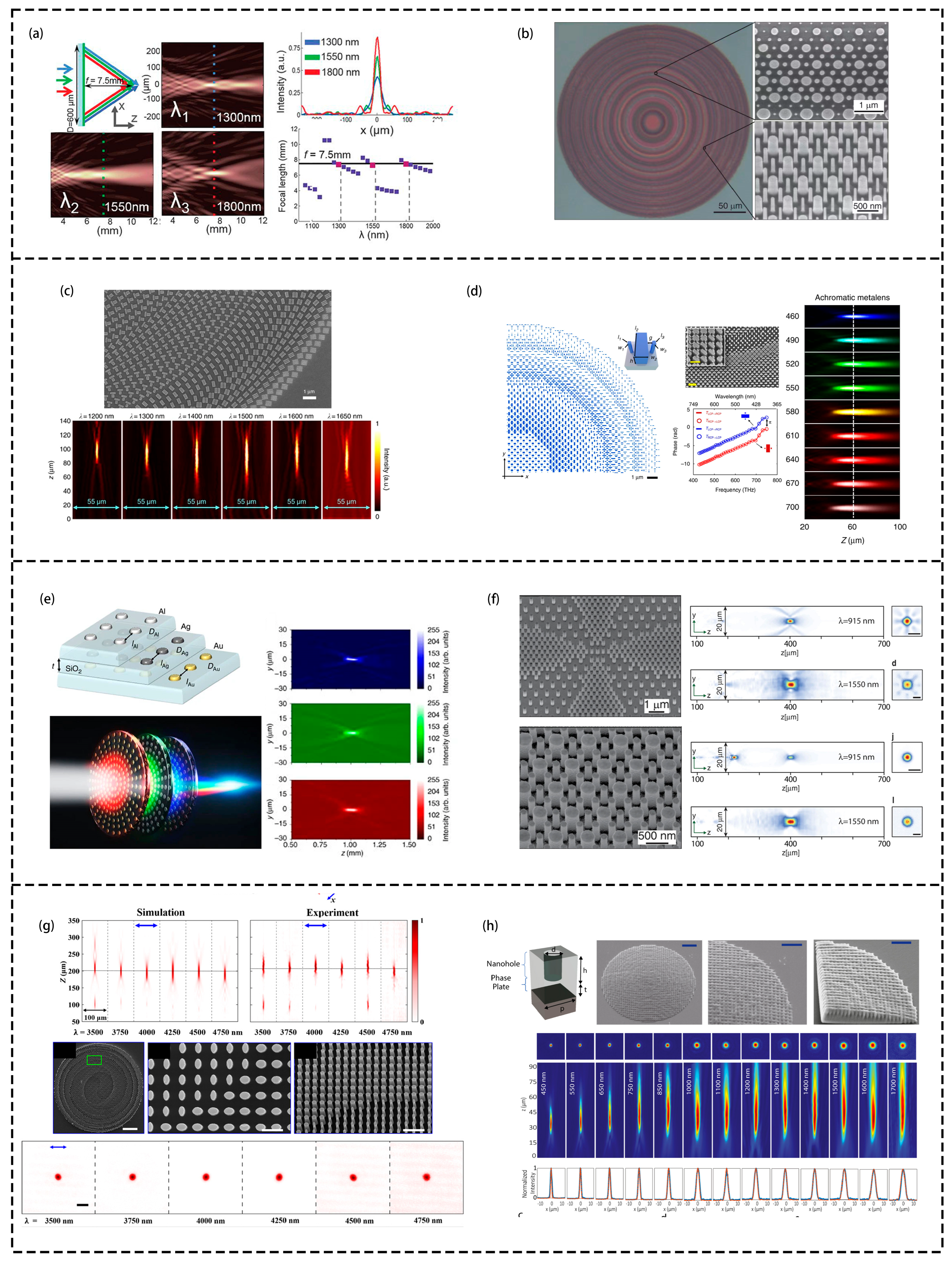 - The phase gradient of metalens exhibits a strong wavelength dependence, which is jointly determined by the intrinsic dispersion characteristics of the material and the geometric dispersion of the structure. The chromatic aberration caused by the intrinsic dispersion of the element structure material and the diffraction effect of the structural geometry will seriously affect the imaging quality of the metalens. This wavelength dependence manifests as a significant shift in the focal length with changes in the wavelength, which severely limits the performance of the metalens in broadband applications.