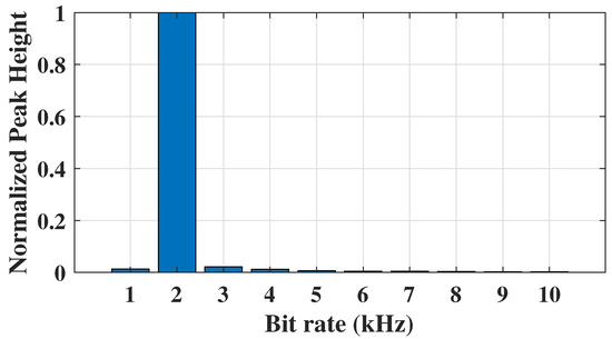 To further clarify, the non-coherent detection scheme in Qian et al.’s study [23] lacks adaptability to tag bit rates, as it assumes prior knowledge of the tag’s configuration. This is a constraint that limits its utility in distributed PV systems, where tags may have varying bit rates without pre-shared parameters. Our adaptive bit-rate matching scheme, by contrast, dynamically adjusts the FIR filter coefficient duration and decoding sampling rate, identifying the optimal bit rate via correlation peak analysis, as shown in Figure 4. This capability ensures reliable demodulation even when the tag’s bit rate is unknown.