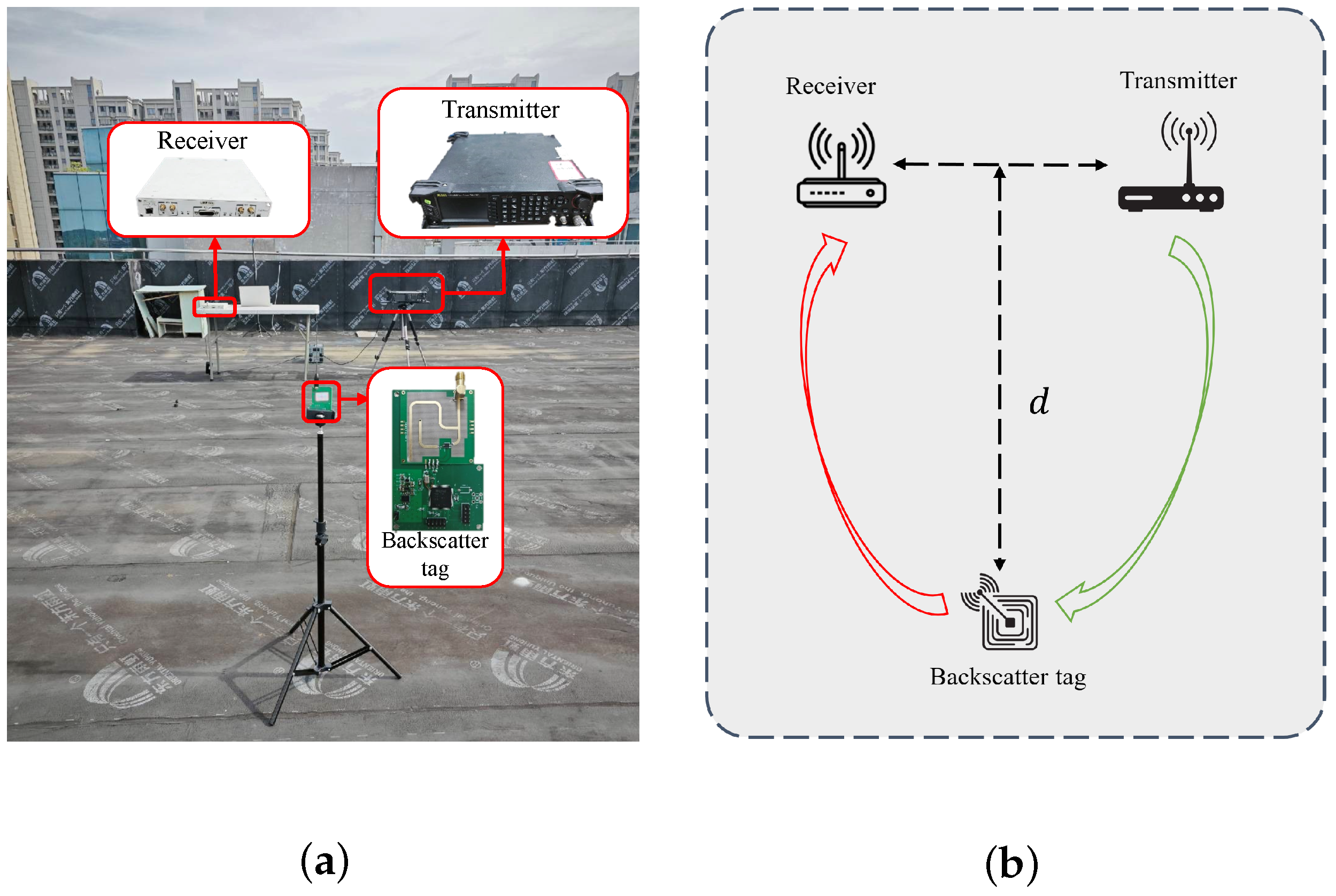 Experimental setup: To evaluate the performance of the FSK-based backscatter system, we conducted experiments in an outdoor rooftop environment. As shown in