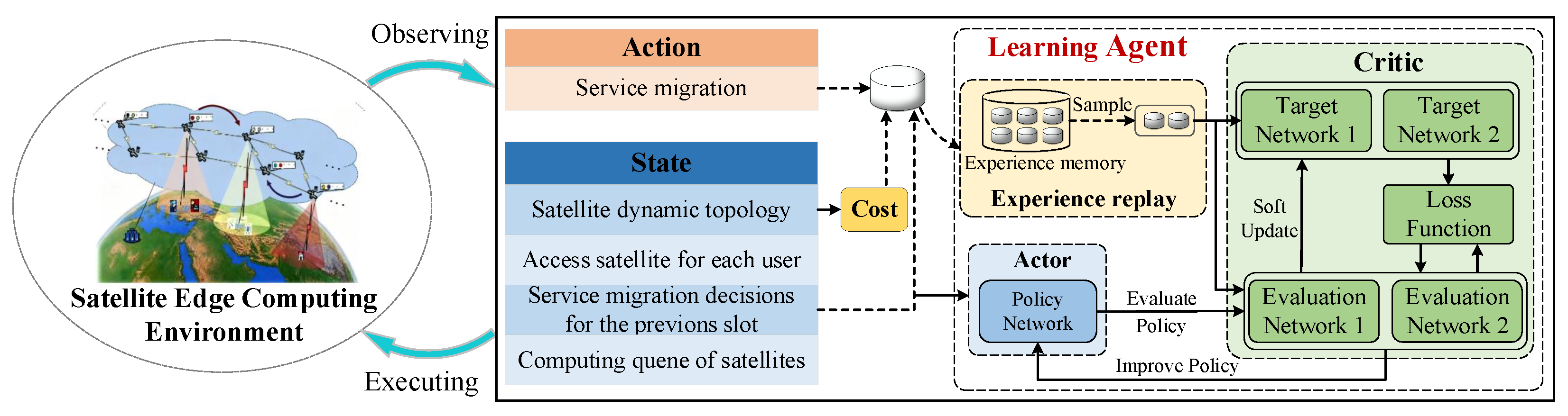 18. Wu, H.; Yang, X.; Bu, Z. Task Offloading With Service Migration for Satellite Edge Computing: A Deep Reinforcement Learning Approach. IEEE Access 2024, 12, 25844–25856. [Google Scholar] [CrossRef]