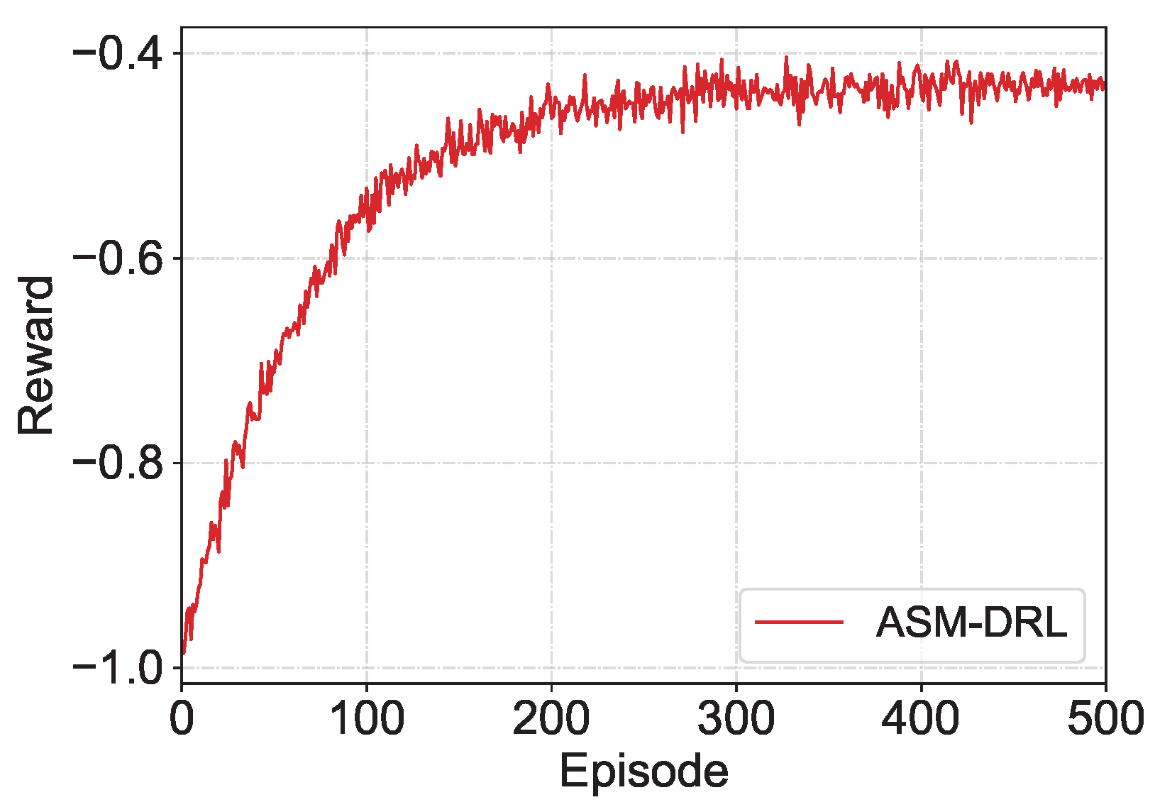 Figure 4. Convergence performance of ASM-DRL during training, where the cumulative reward stabilizes after approximately 300 episodes.