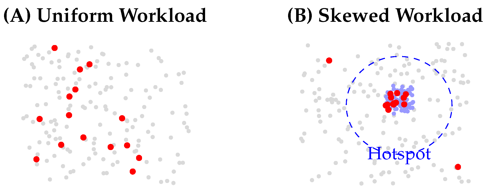 The Skew of Adversarial Workloads: Malicious activity is not uniformly distributed. A small number of large-scale phishing or malware campaigns can be responsible for a vast majority of newly generated URLs at any given time. This “bursty” nature creates highly skewed data distributions. Similarly, analyst queries are not random; they often concentrate on these active, high-impact threats, creating access pattern skew. Static data structures and query plans perform poorly under such conditions, as they are designed with an implicit assumption of uniformity. This leads to contention, imbalanced load, and increased query latency in the “hot” regions of the index. An effective system must be adaptive, capable of recognizing and mitigating these skews, a concept explored by systems like