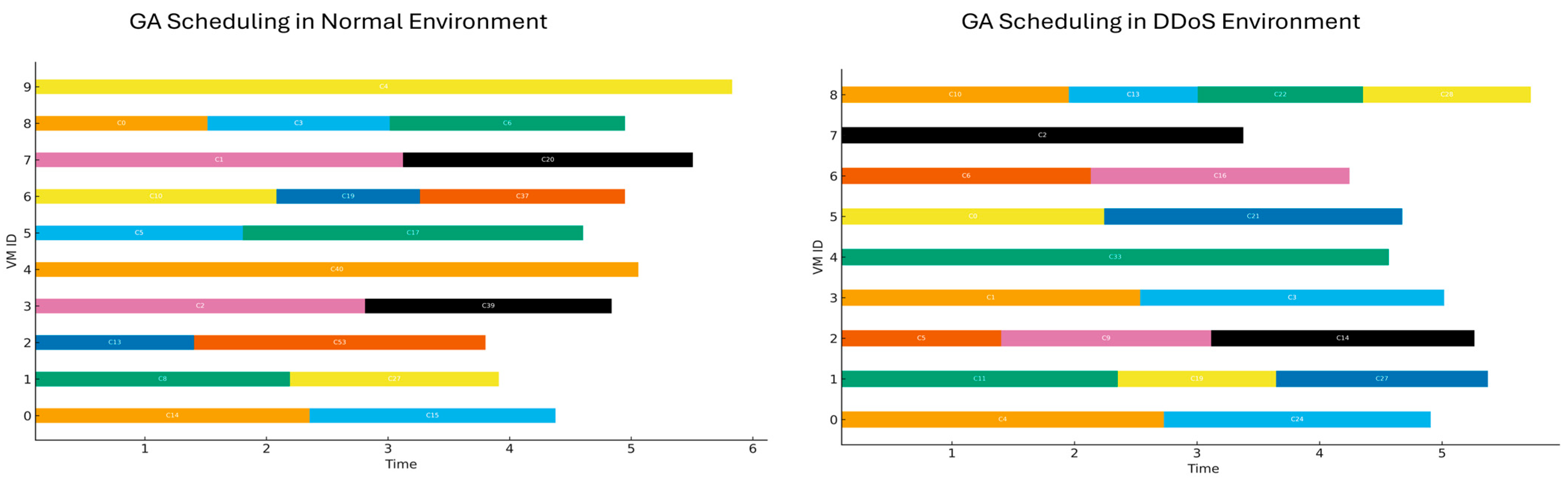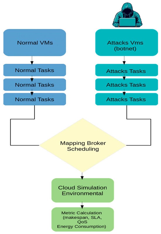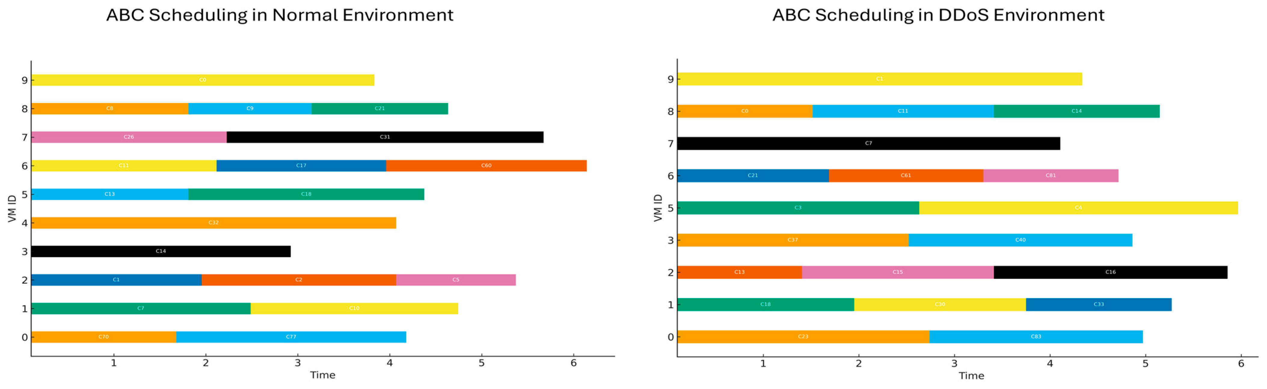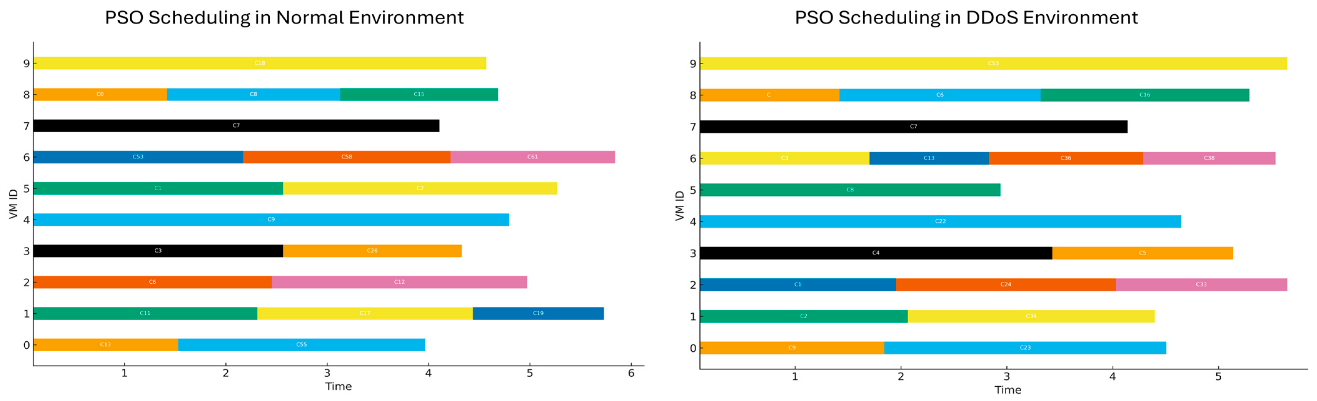 - Kaplan, F.; Babalık, A. Performance analysis of cloud computing task scheduling using metaheuristic algorithms in DDoS and normal environments. Electronics 2025, 14, 1988. [Google Scholar] [CrossRef]