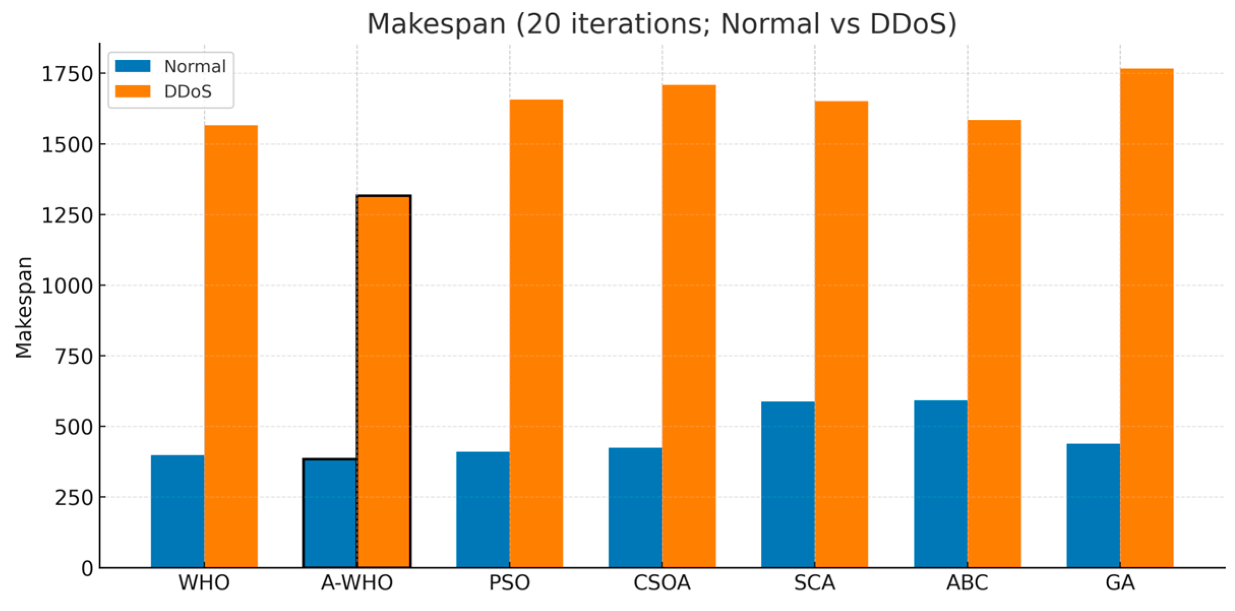 APA StyleKaplan, F., & Babalık, A. (2025). A-WHO: Stagnation-Based Adaptive Metaheuristic for Cloud Task Scheduling Resilient to DDoS Attacks. Electronics, 14(21), 4337. https://doi.org/10.3390/electronics14214337