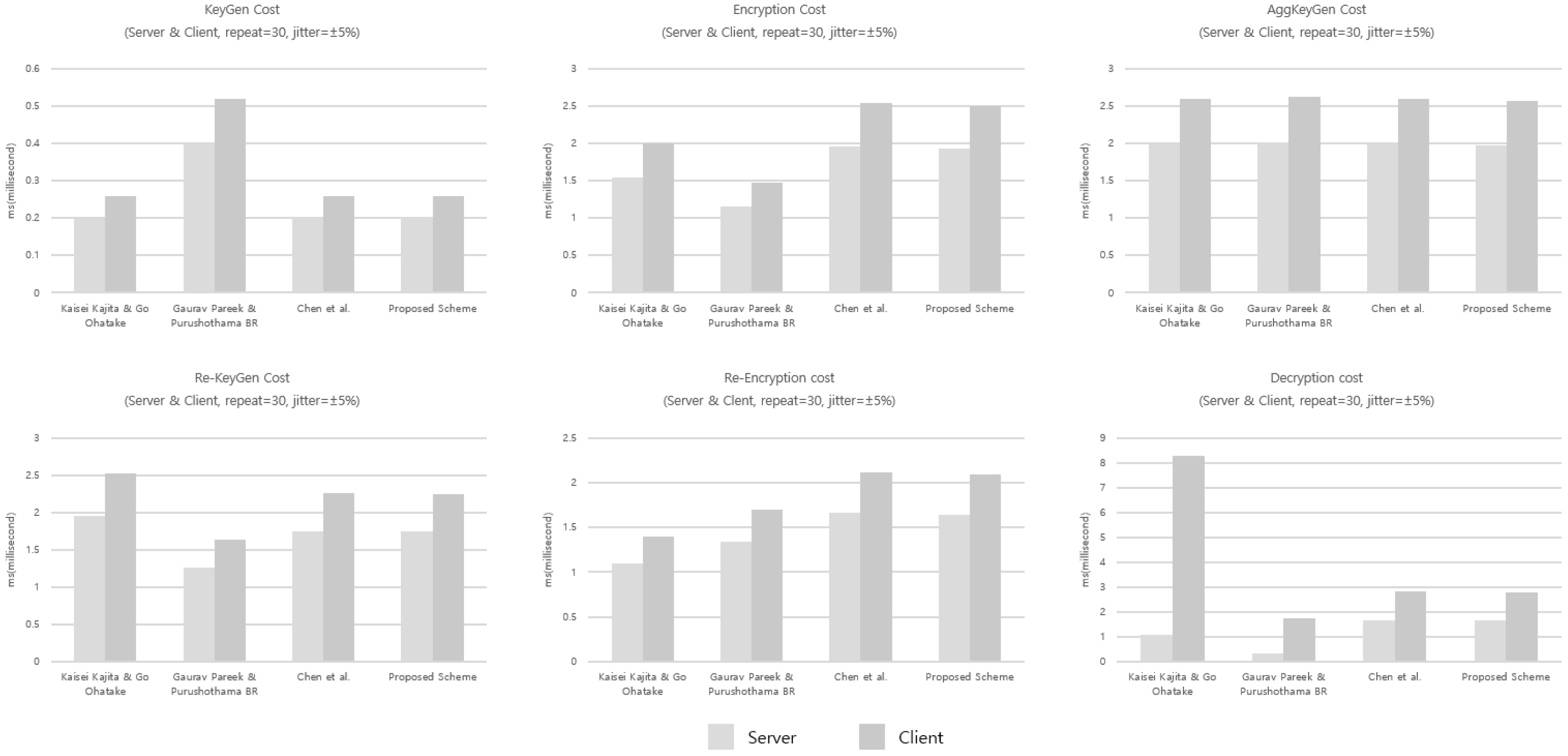 | Key-Gen Cost | Encryption Cost | Aggregate KeyGen Cost | Re-KeyGen Cost | Re-Encryption Cost | Decryption Cost | |