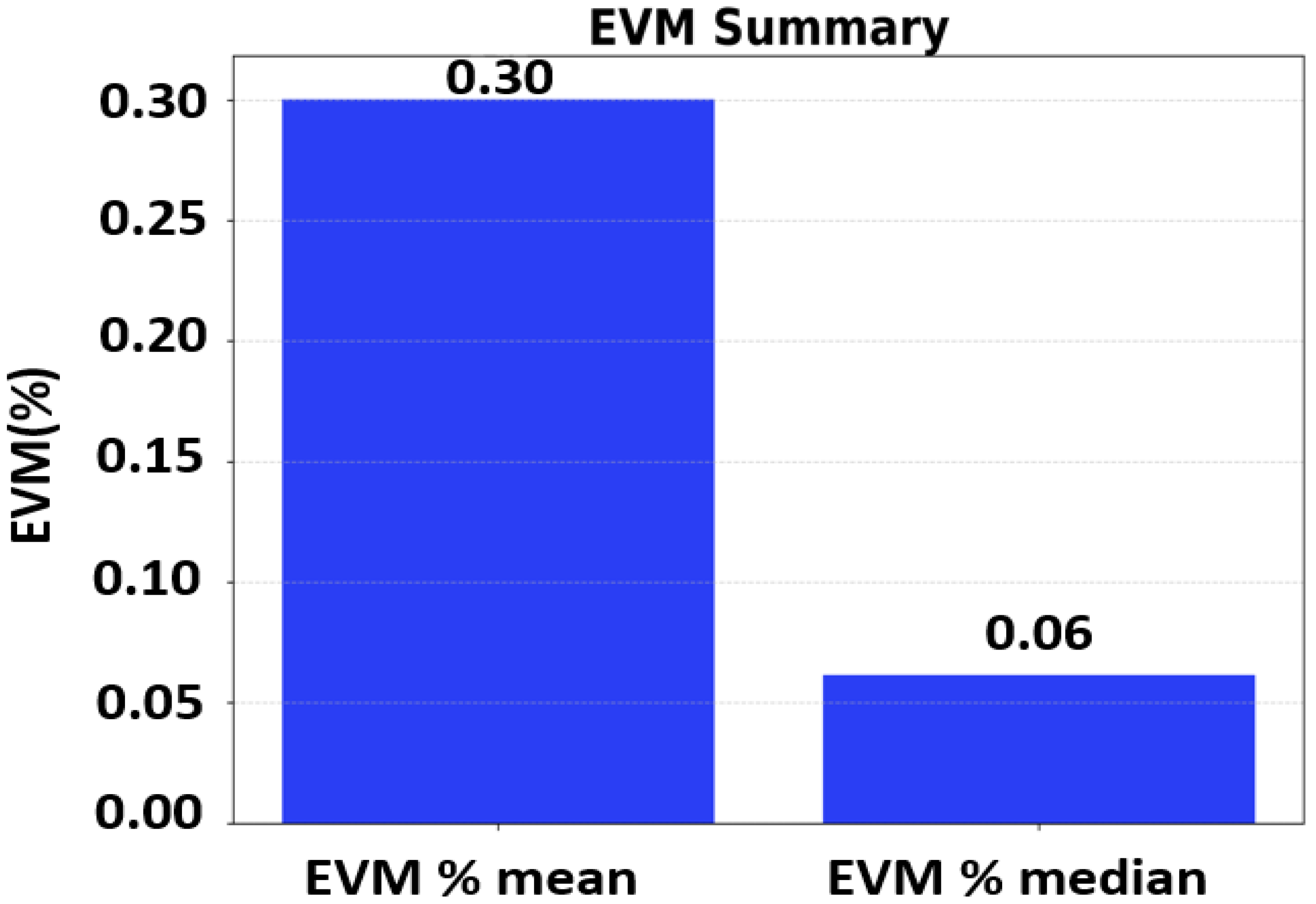 and RMS EVM ≈ 0.30% (median ≈