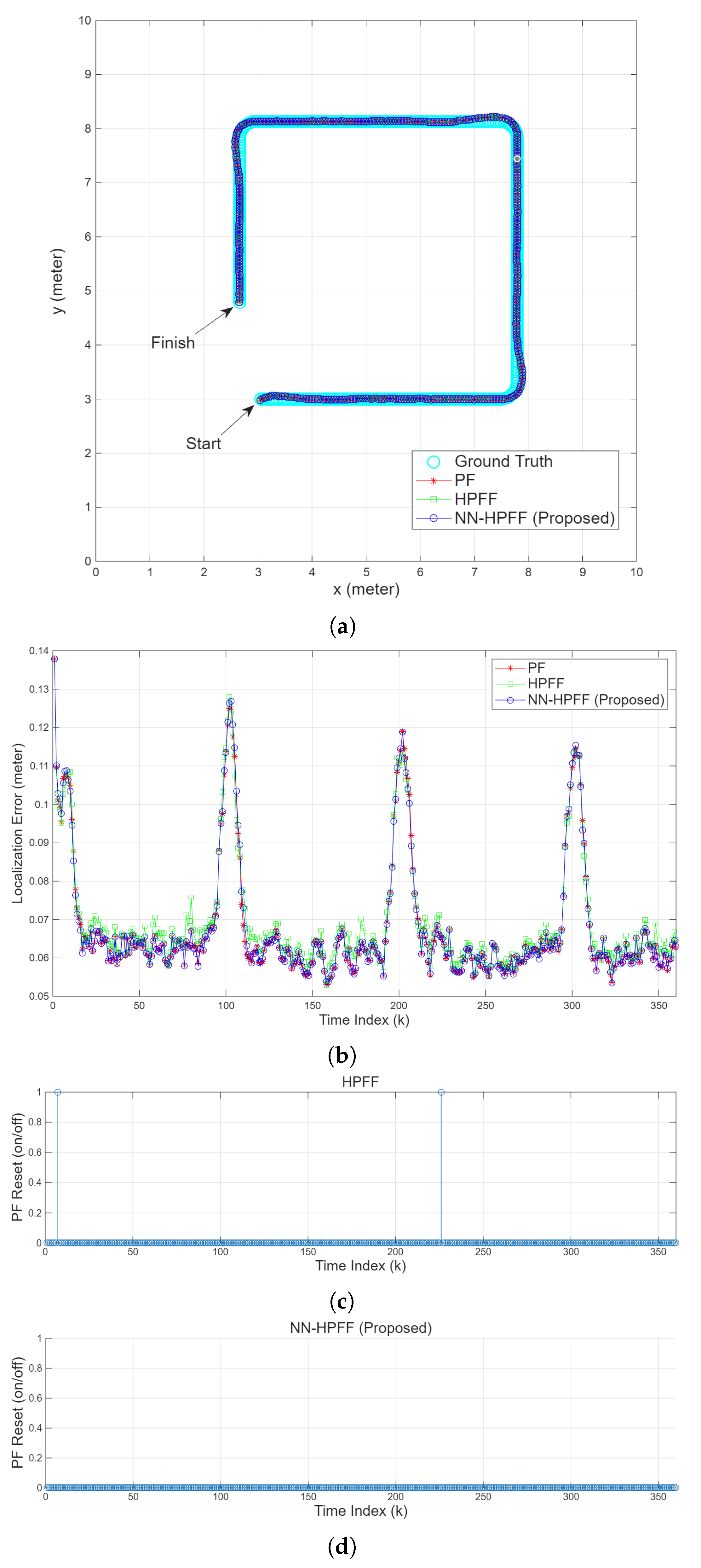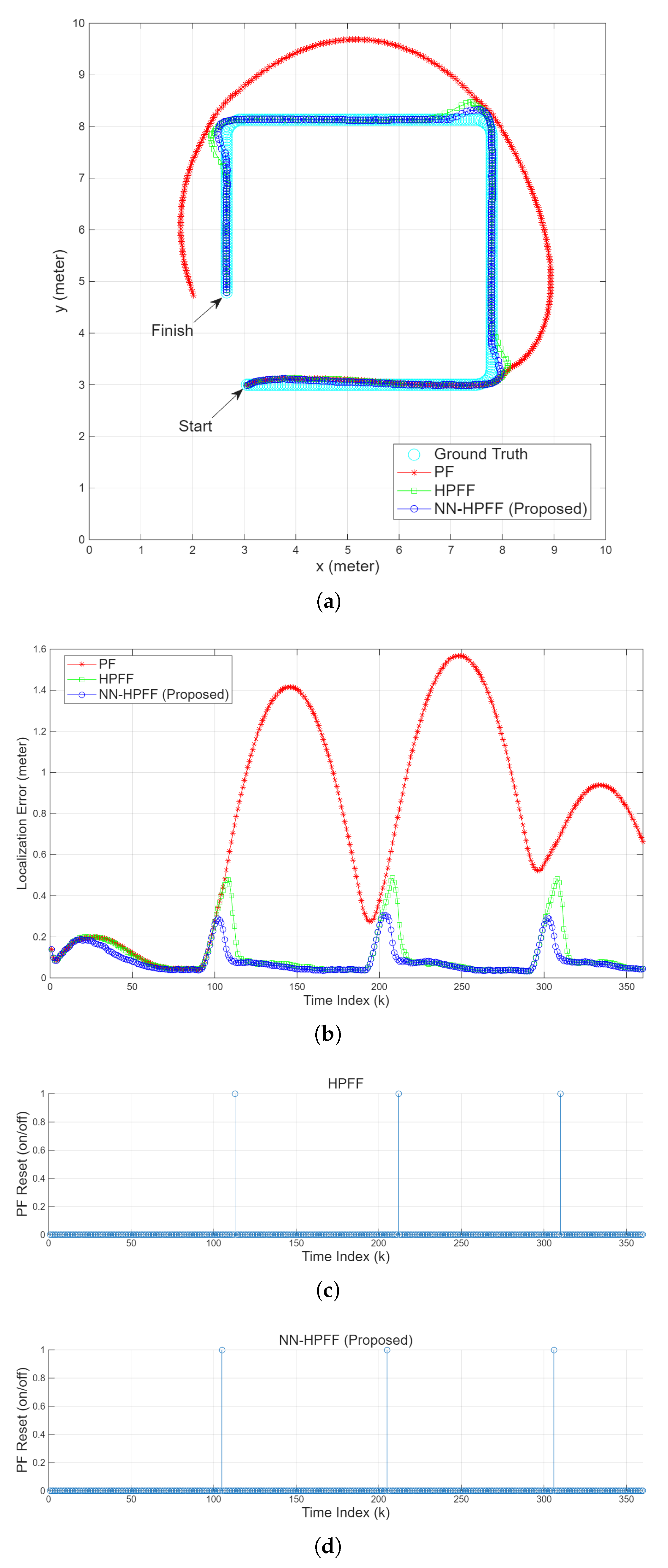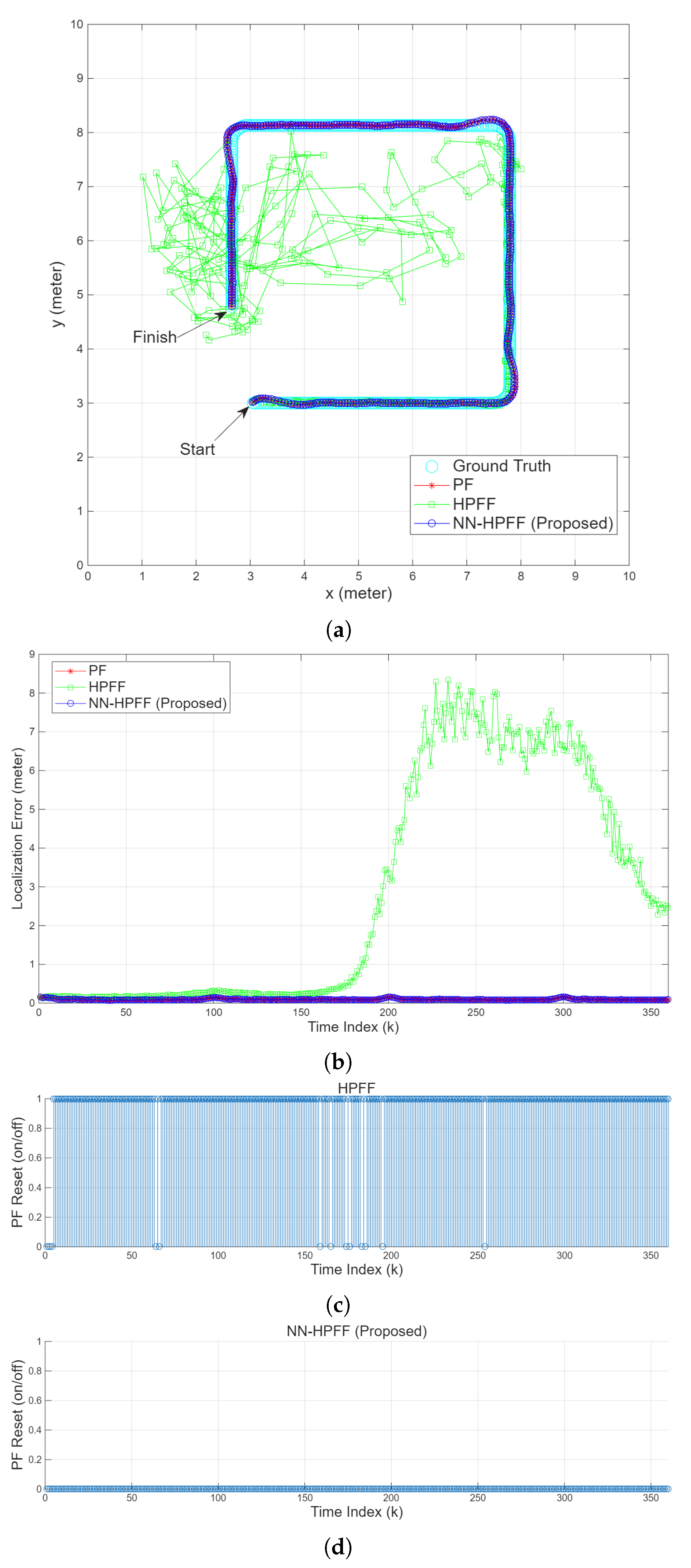 values. Consequently, NN-HPFF did not perform any PF resets and behaved similarly to a pure PF.