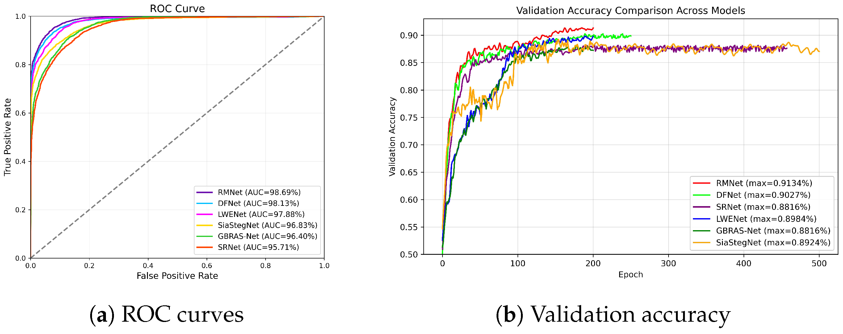 4.5.4. Comparison Between RMNet and Vision Transformer-Based Steganalysis Models